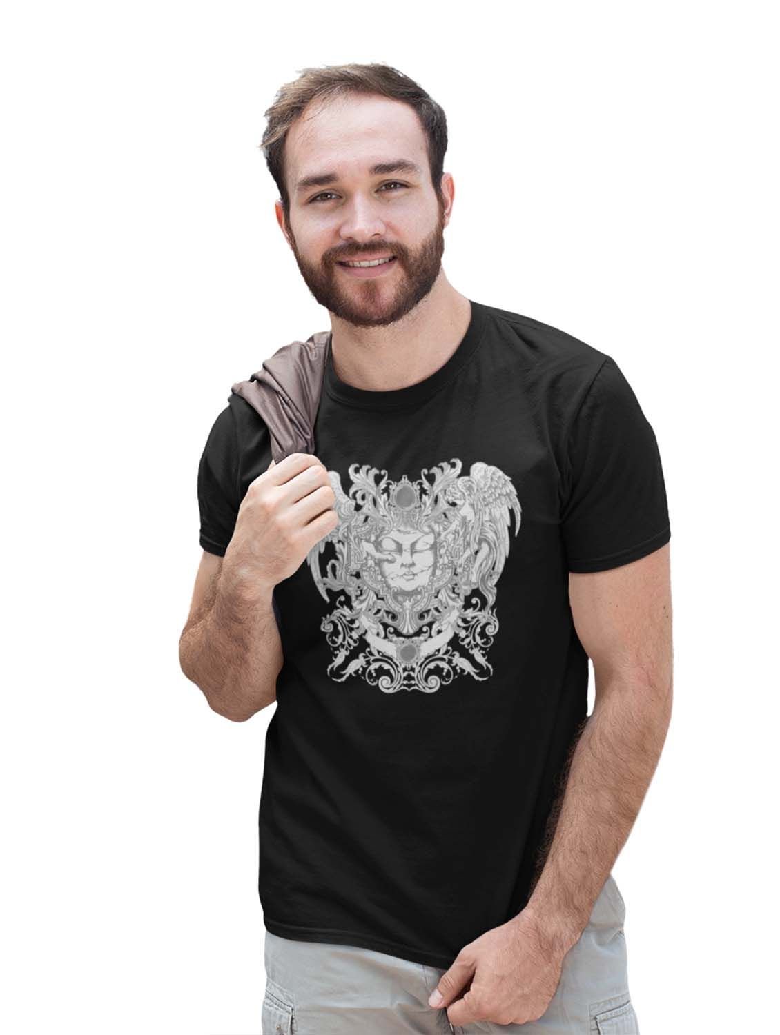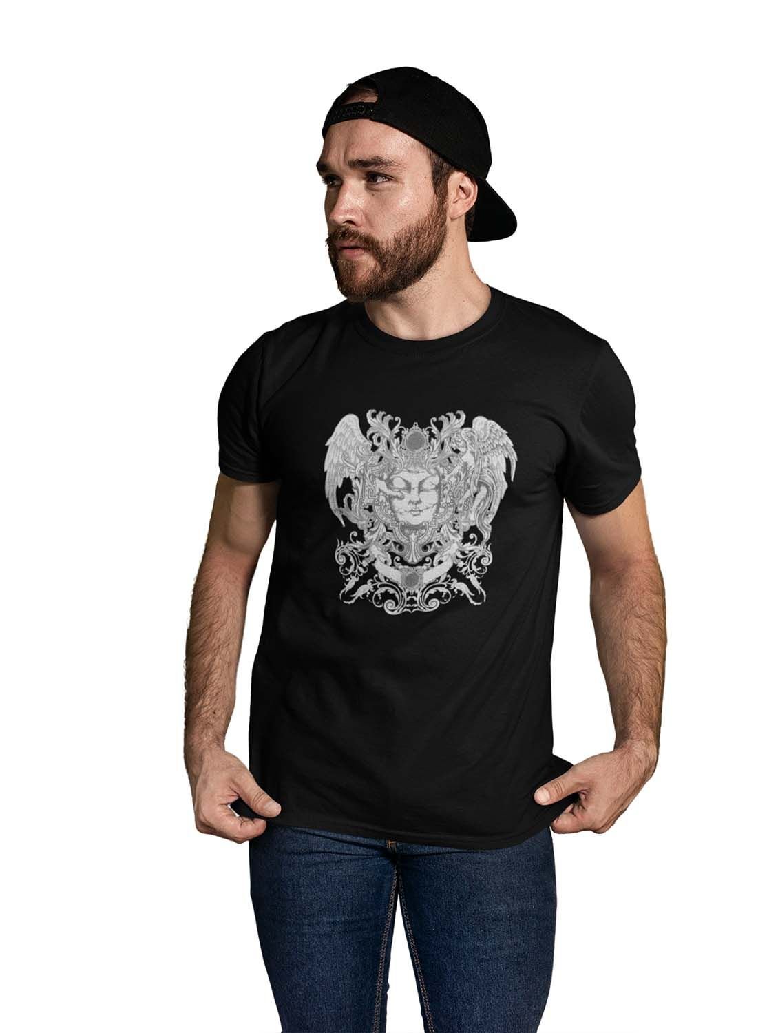 The Evil Angel Black Round Neck Cotton Half Sleeved T-Shirt with Printed Graphics