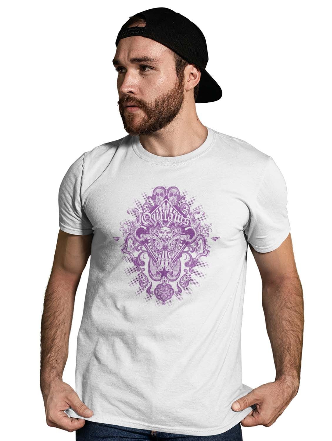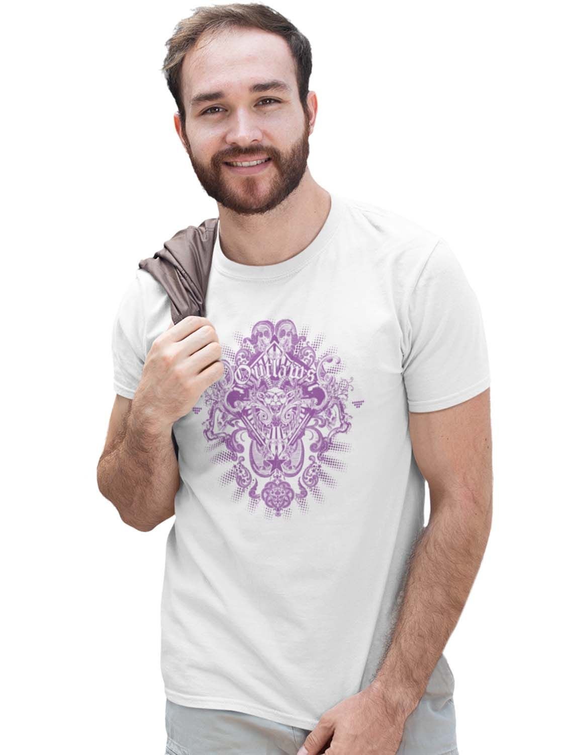 Outlams - Round Neck Tshirt White Round Neck Cotton Half Sleeved T-Shirt with Printed Graphics