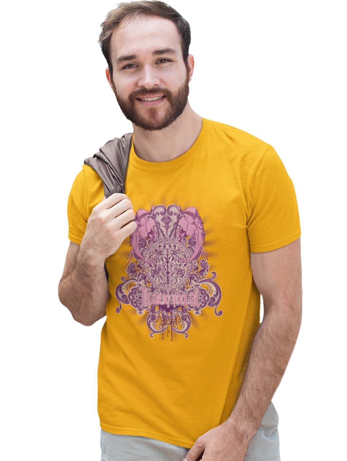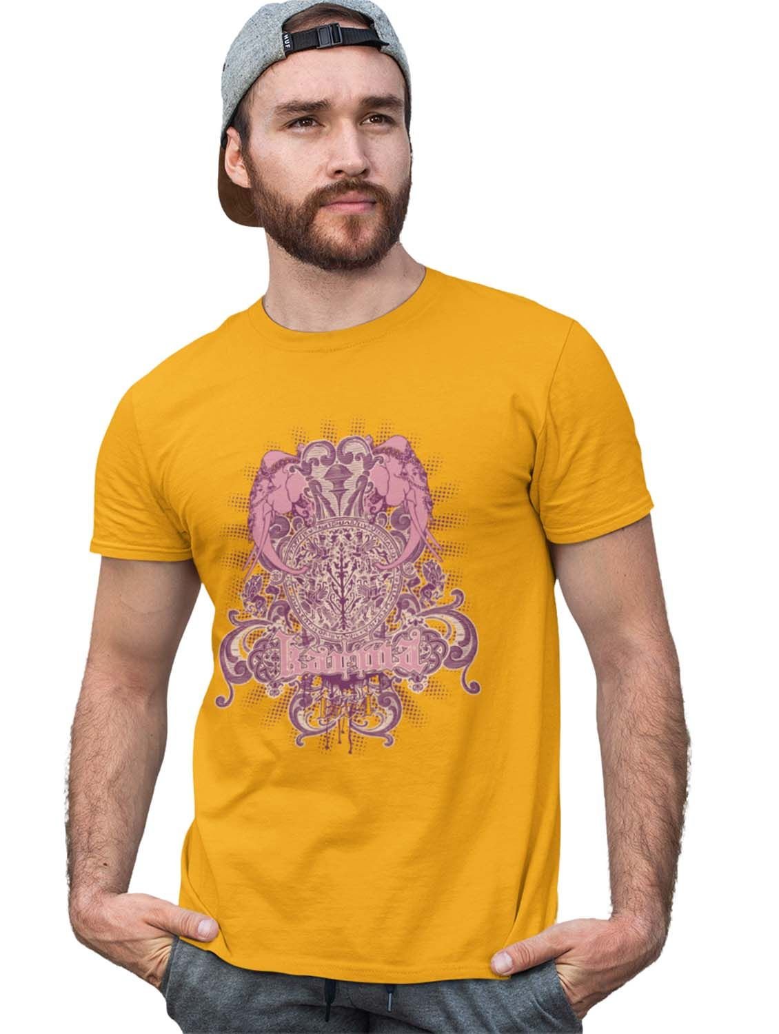 The Power Of Karma Yellow Round Neck Cotton Half Sleeved T-Shirt with Printed Graphics