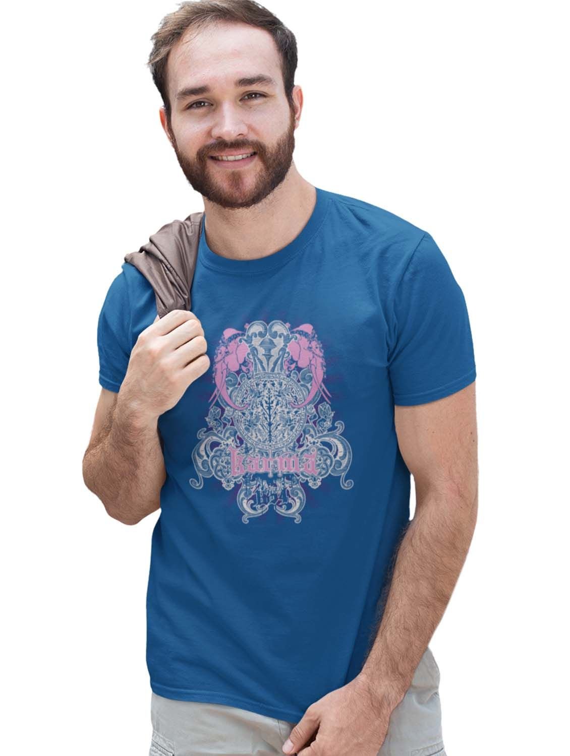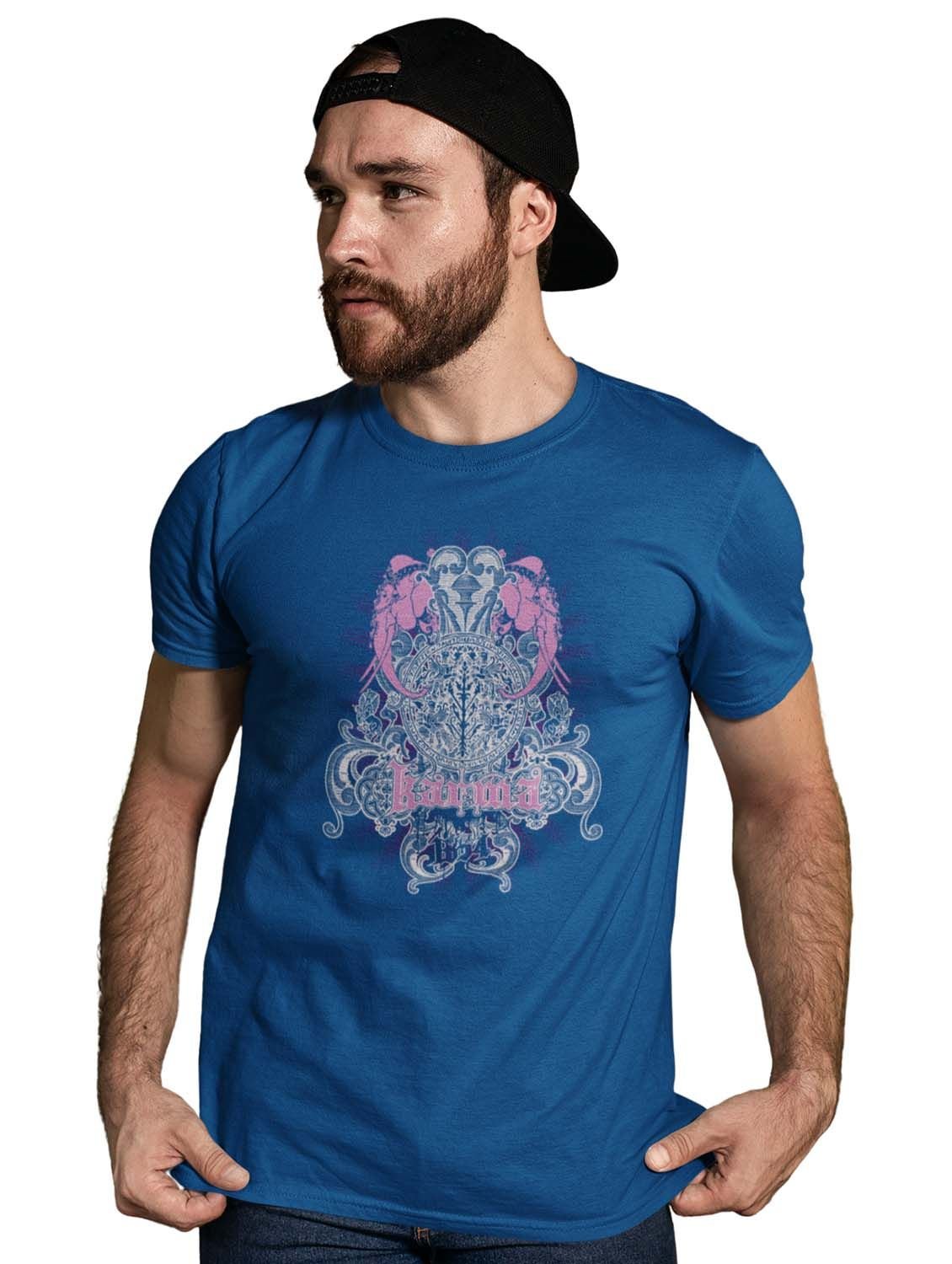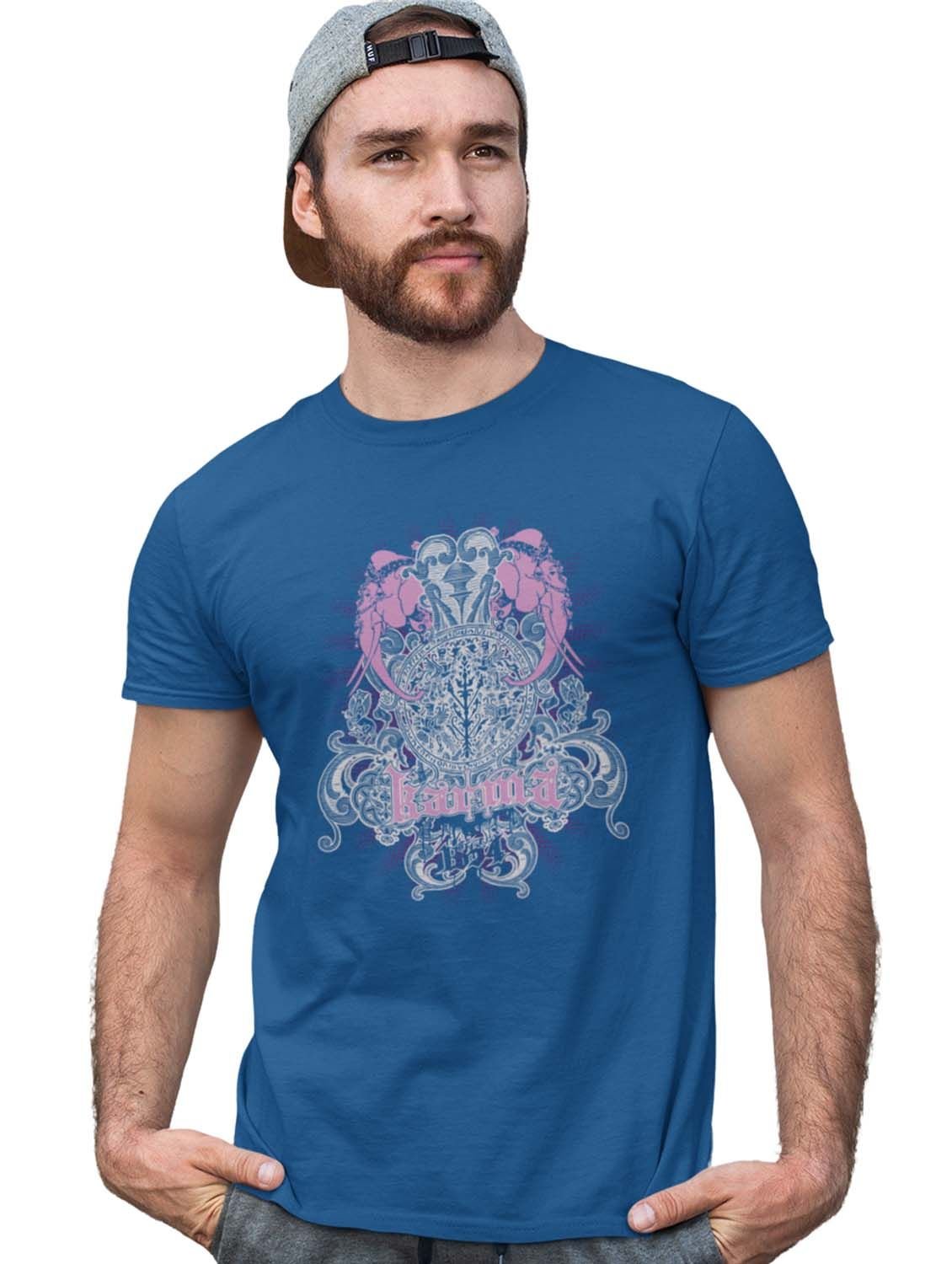 The Power Of Karma Blue Round Neck Cotton Half Sleeved T-Shirt with Printed Graphics