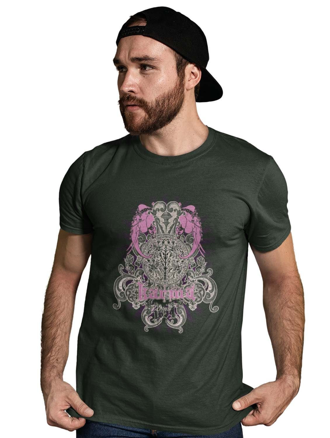 The Power Of Karma Green Round Neck Cotton Half Sleeved T-Shirt with Printed Graphics