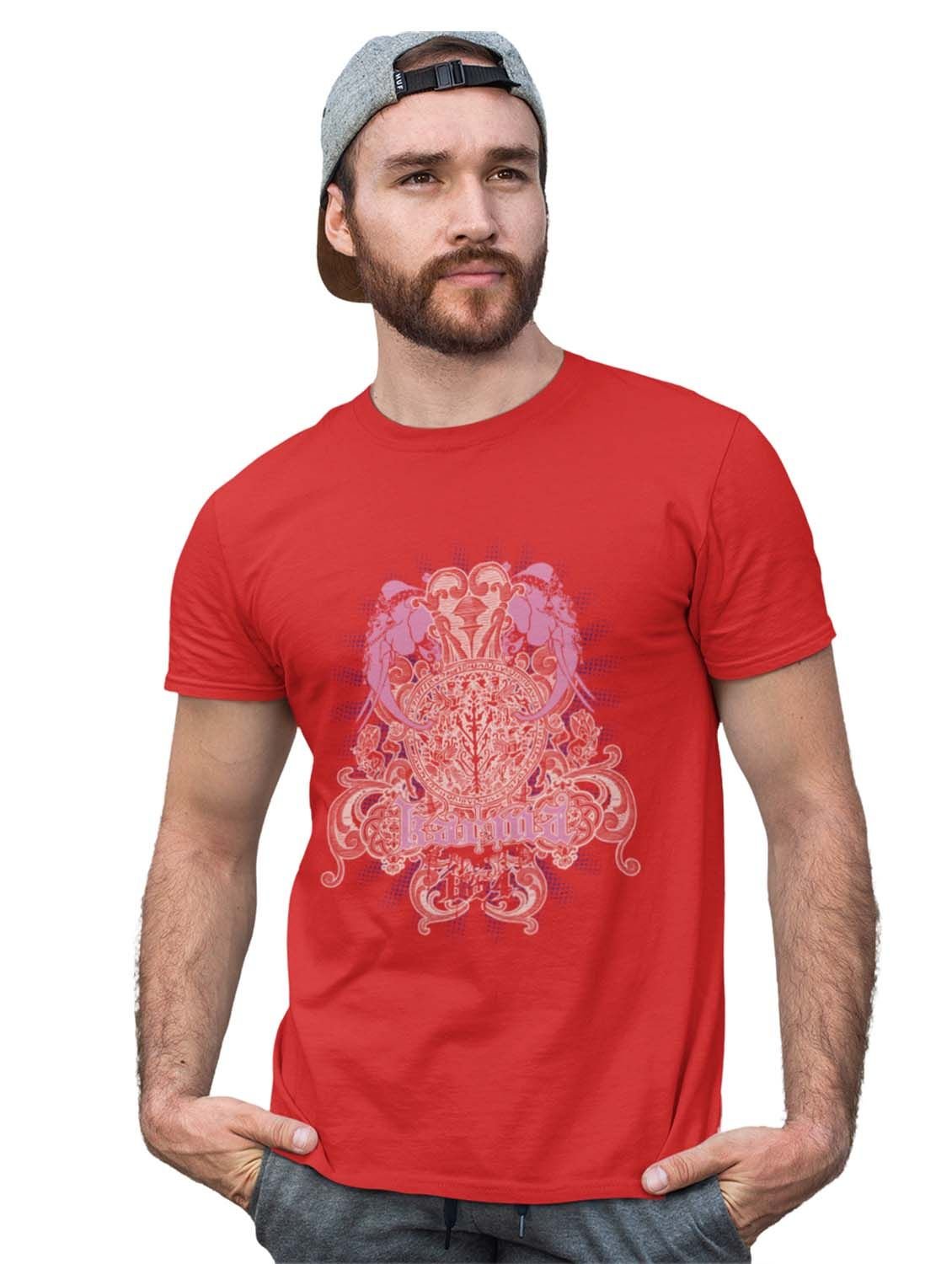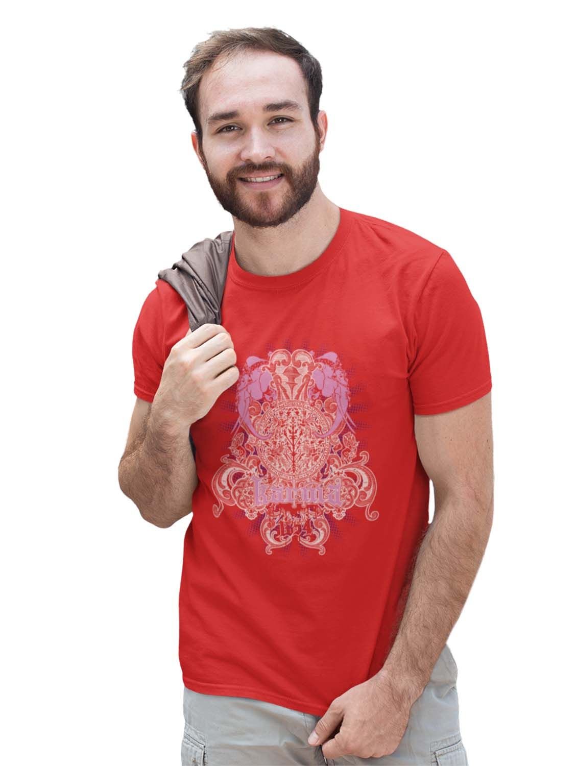 The Power Of Karma Red Round Neck Cotton Half Sleeved T-Shirt with Printed Graphics