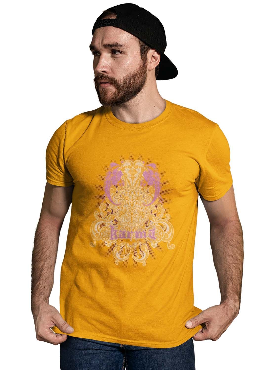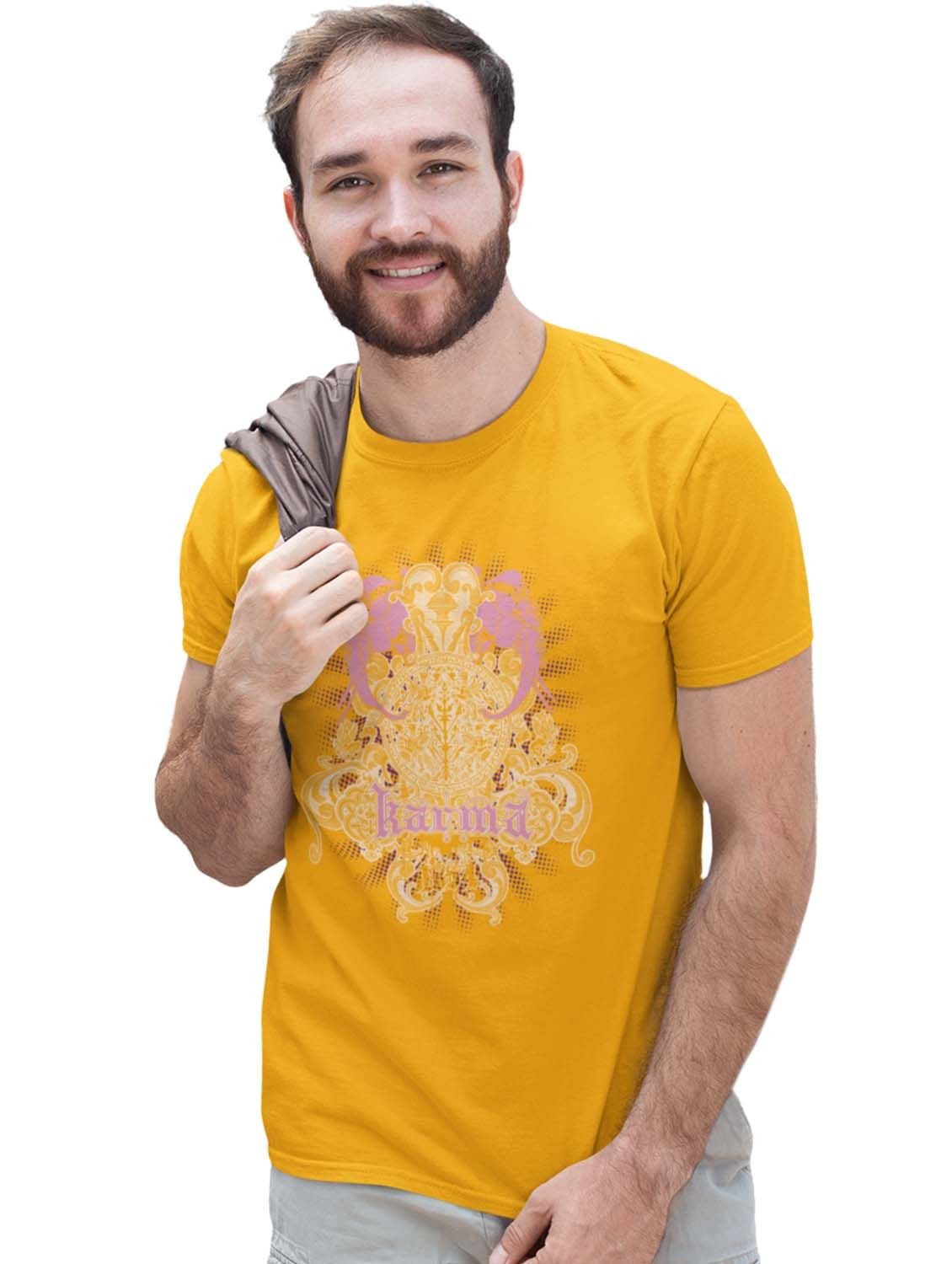 The Karma Yellow Round Neck Cotton Half Sleeved T-Shirt with Printed Graphics