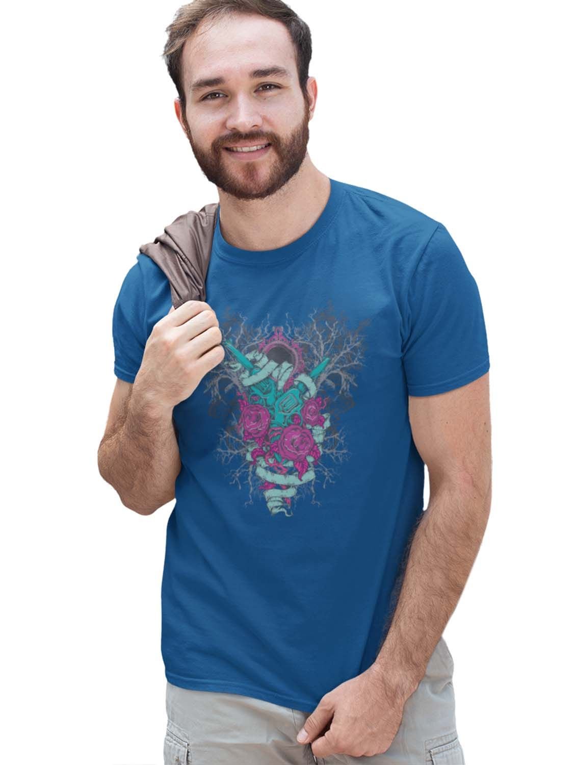 Mirror Monster Blue Round Neck Cotton Half Sleeved T-Shirt with Printed Graphics
