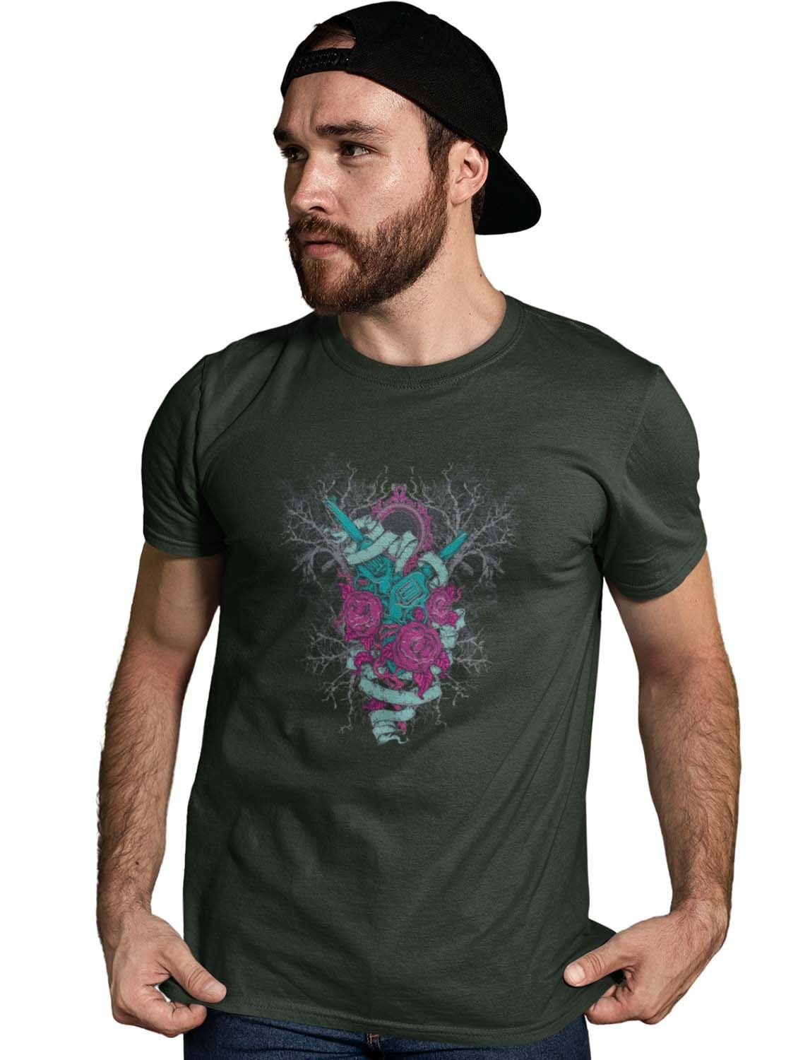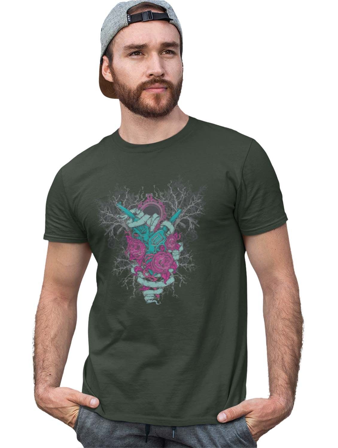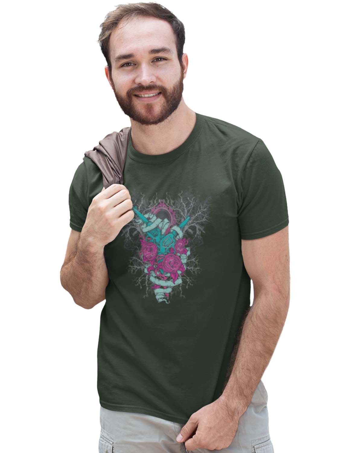 Mirror Monster Green Round Neck Cotton Half Sleeved T-Shirt with Printed Graphics