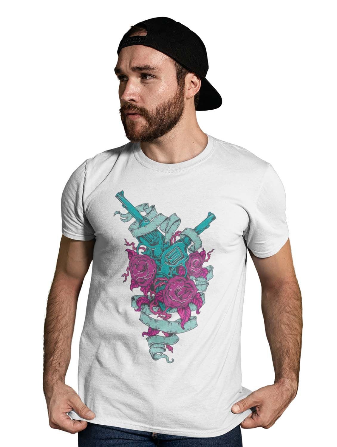 Rods And Roses White Round Neck Cotton Half Sleeved T-Shirt with Printed Graphics