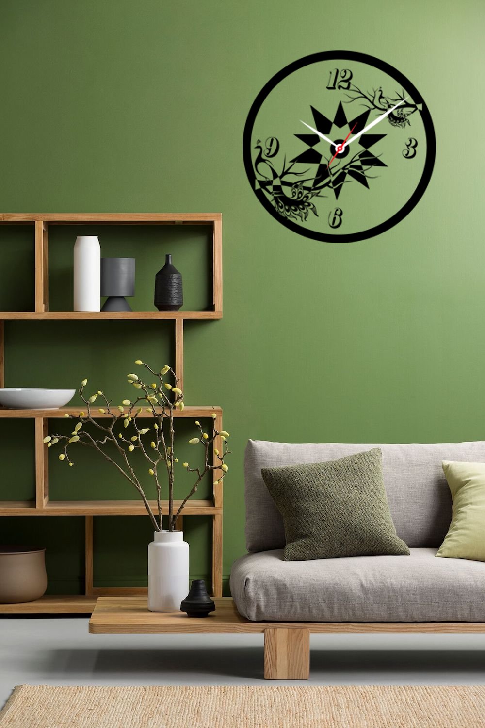 2 Peacocks Sitting On A Branch, 4 Numbers Visible Based Clock (Black C) - Suitable For The Decoration Of A House - Foremost Gifting Material for Your Friends, Relatives and Close Ones