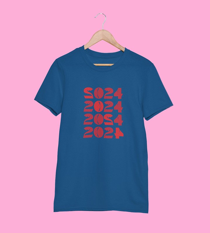 2024 Has Come Blue Men Printed T-shirt For Mens Boys