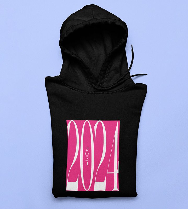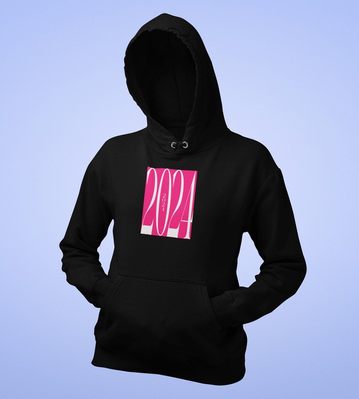 2024 New Year, Black Printed Hoodies For Mens On New Year Theme Best Gift For New Year