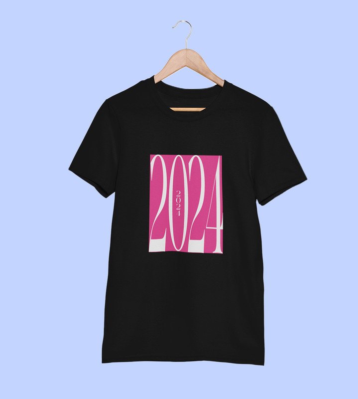 2024 New Year Black Printed T-shirt For Mens On New Year Theme Best Gift For New Year