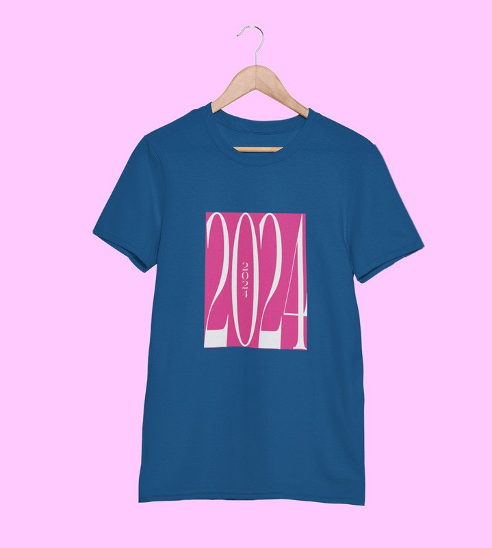 2024 New Year Blue Printed T-shirt For Mens On New Year Theme Best Gift For New Year