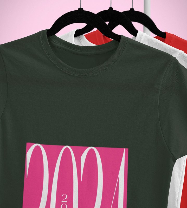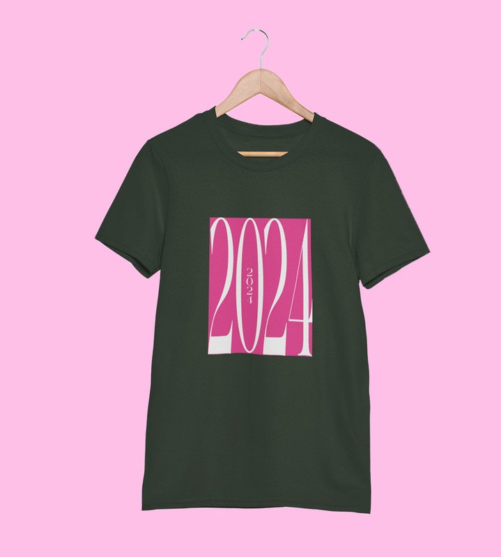 2024 New Year Green Printed T-shirt For Mens On New Year Theme Best Gift For New Year