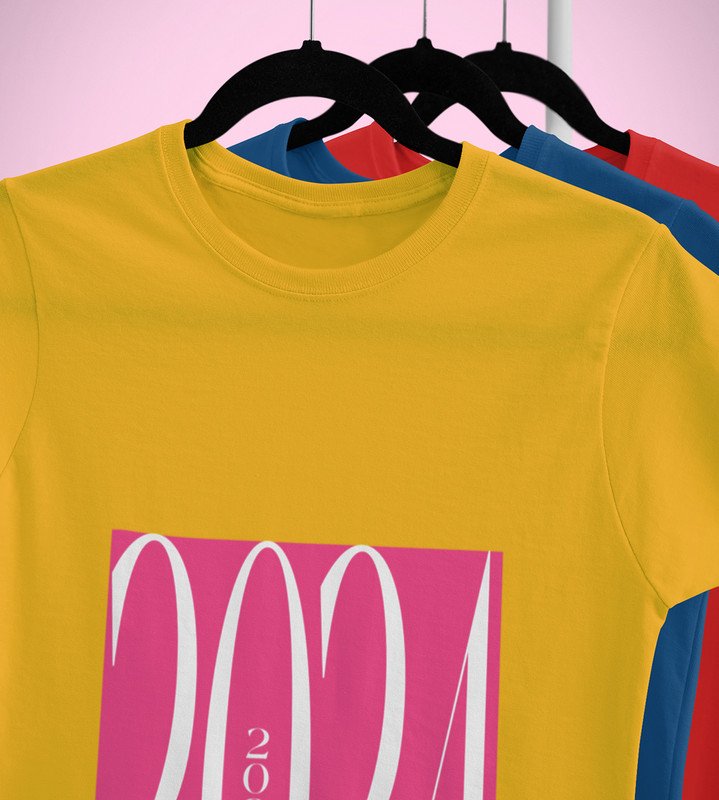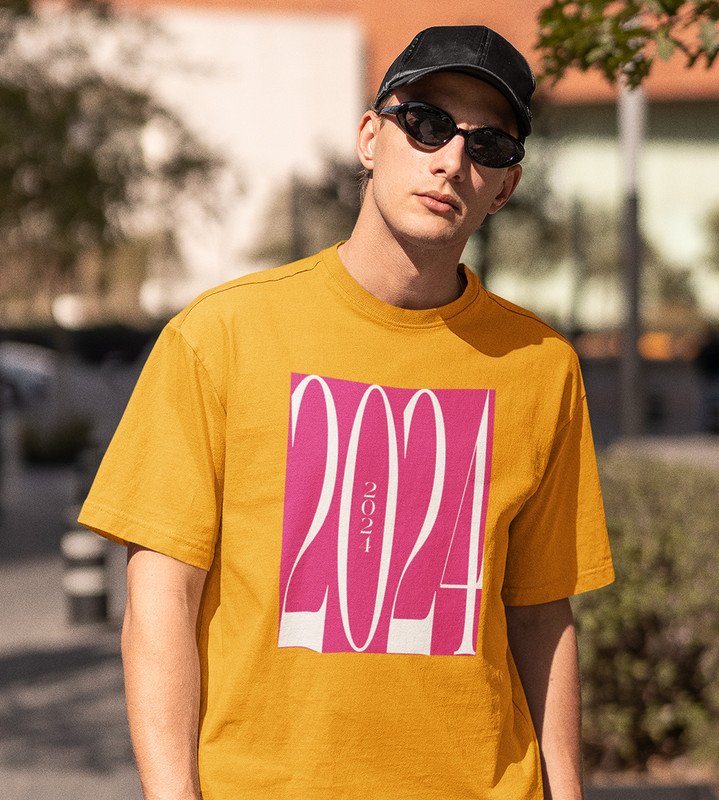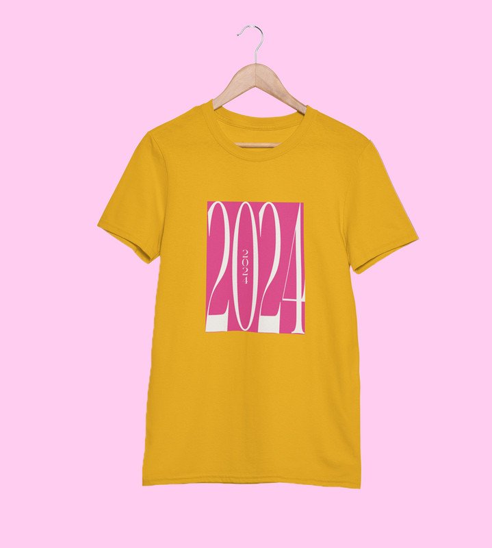 2024 New Year Yellow Printed T-shirt For Mens On New Year Theme Best Gift For New Year