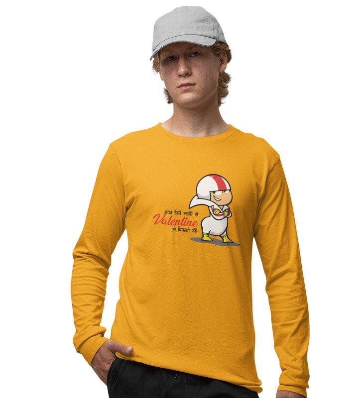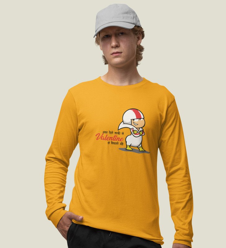 Valentine's Doesn’t Matters: (yellow) Full Sleeve T-Shirt For Singles