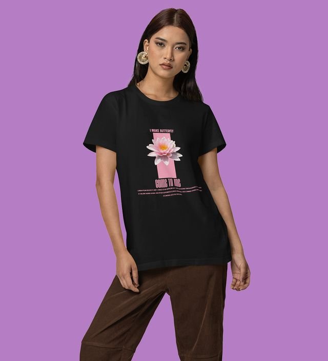 Flutter to My Aura: Graphic Printed Black T-Shirt