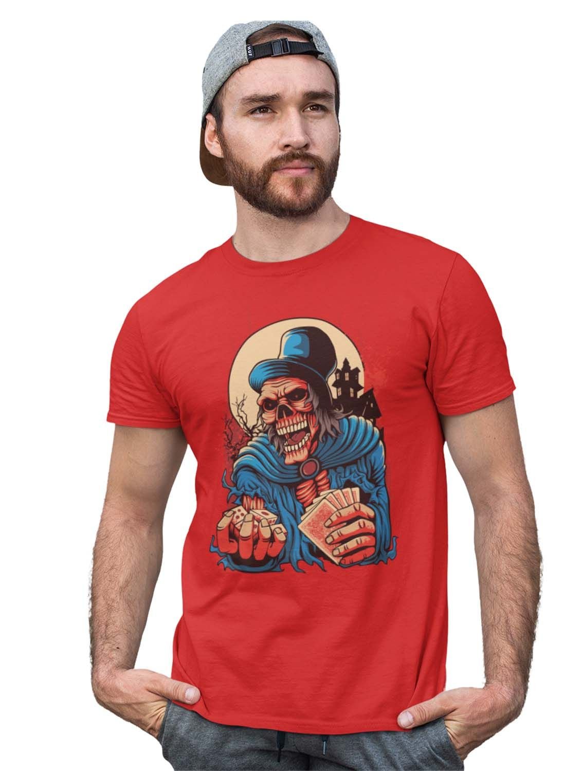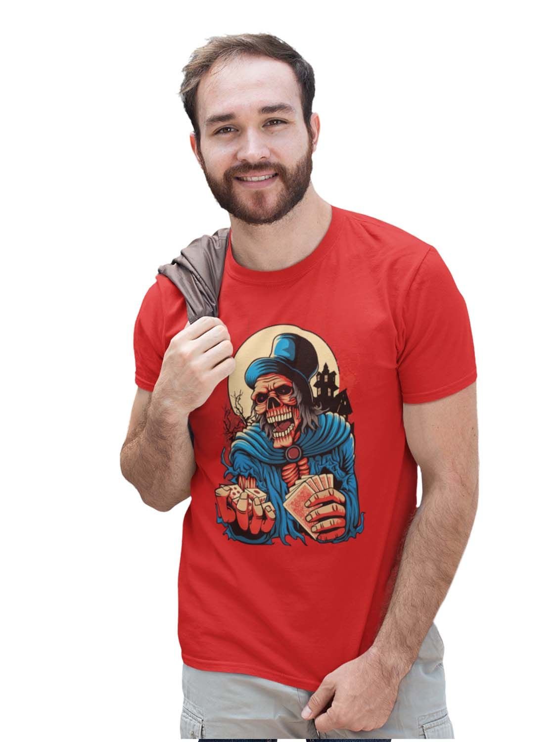 Game Of Life Red Round Neck Cotton Half Sleeved T-Shirt with Printed Graphics