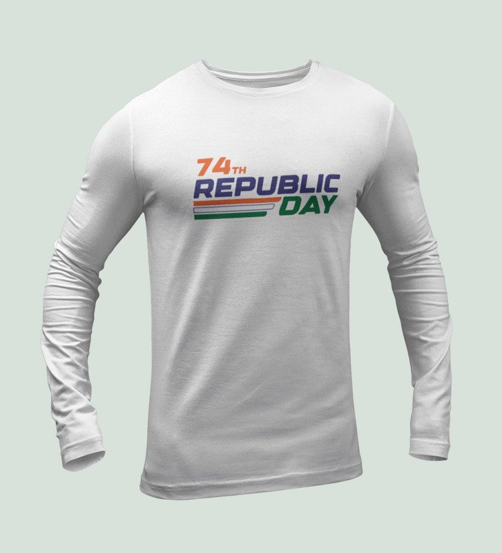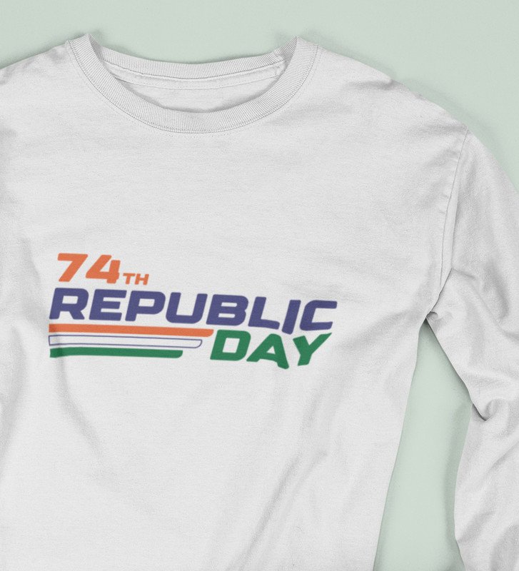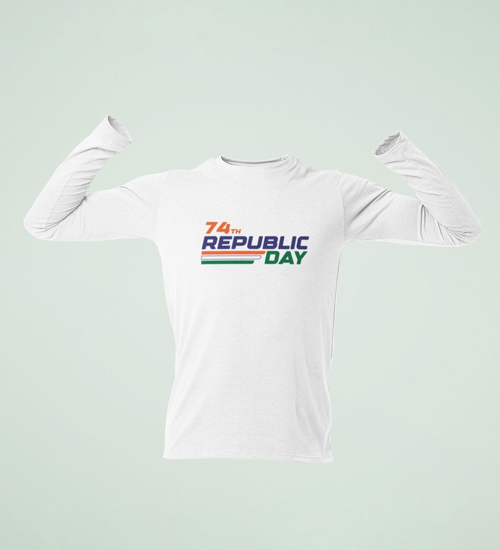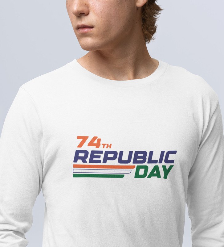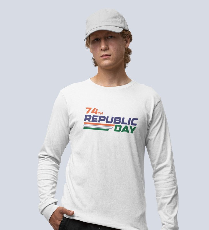 74th Proud Republic Day, White Printed Full Sleeve T-shirts Round Neck for Men