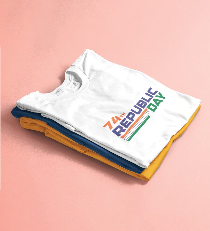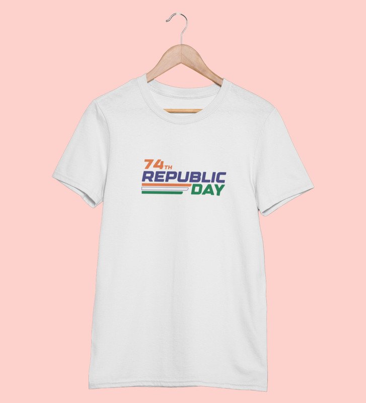 74th Proud Republic Day, White Printed T-Shirts Round Neck for Men