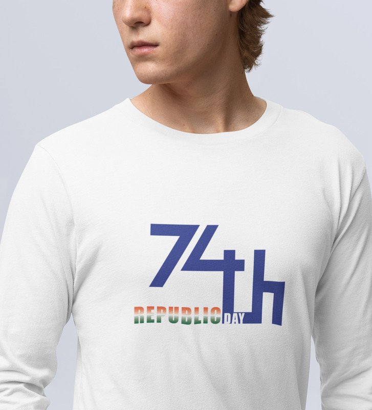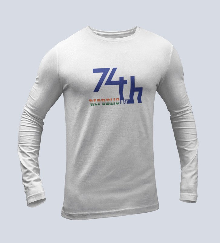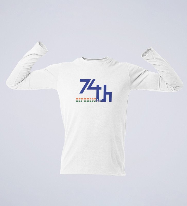 74th Republic Day, White Printed Full Sleeve T-shirts Round Neck for Men