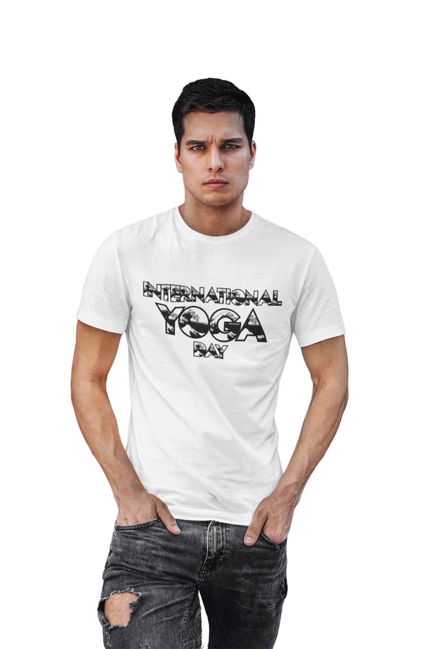 International yoga day Black and white - White - Comfortable Yoga T-shirts for Yoga Printed Men's T-shirts White