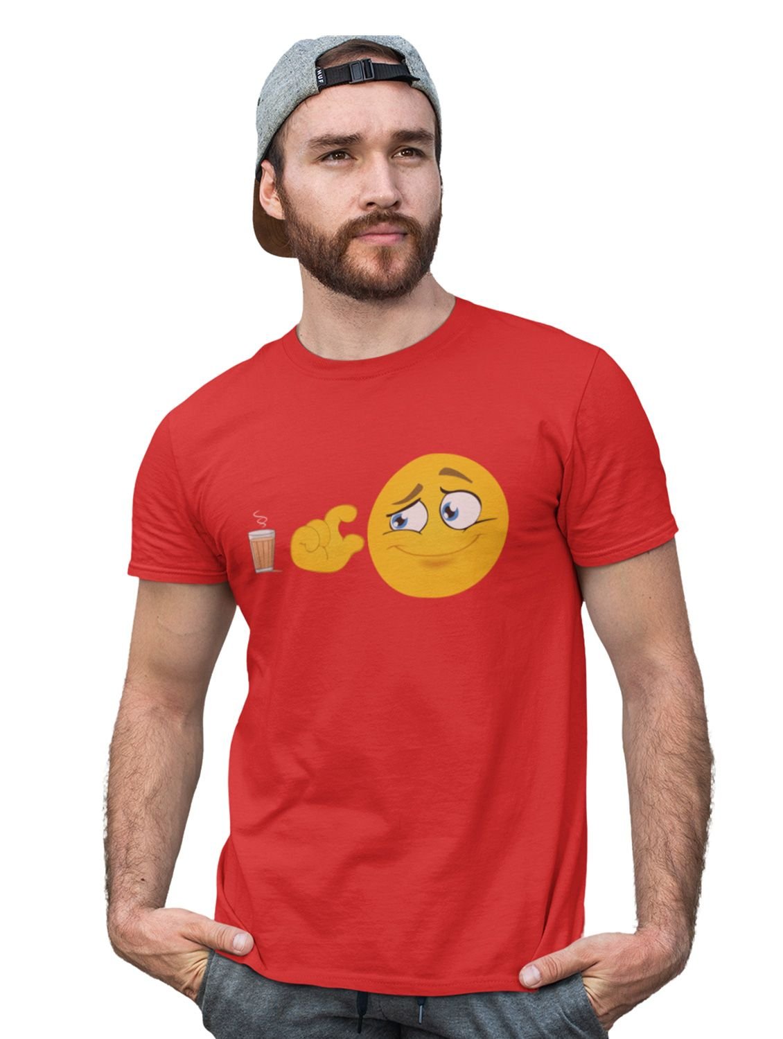 A Cup of Tea for Me Printed T-shirt (Red) - Clothes for Emoji Lovers - Foremost Gifting Material for Your Friends and Close Ones