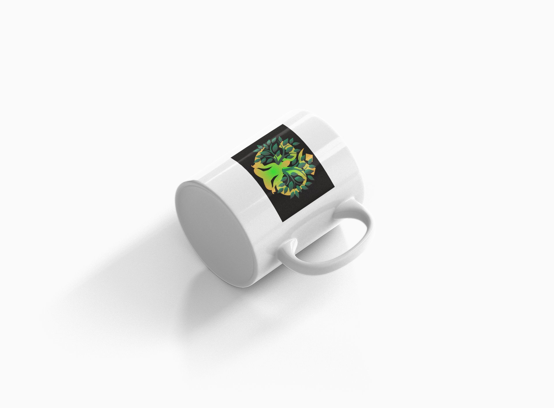 A Man's Shadow Is Sitting In front Of Om Symbol, (BG Green) - Printed Coffee Mugs For Yoga Lovers