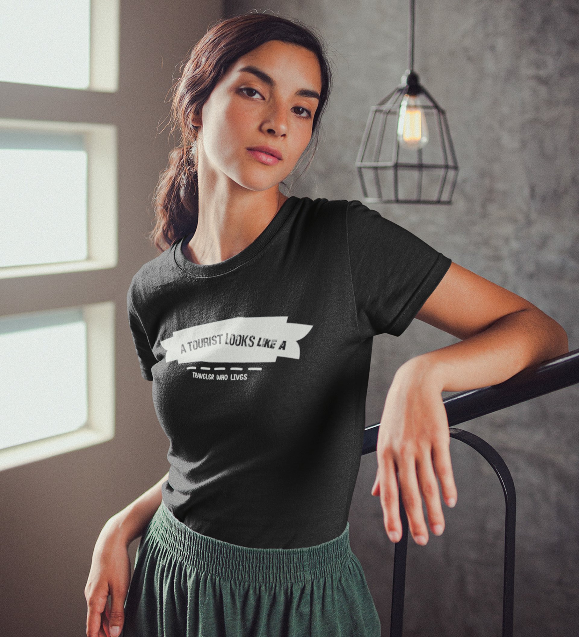 HopOfferTraveller Who Lives Black Round Neck Cotton Half Sleeved Women's T-Shirt with Printed Graphics