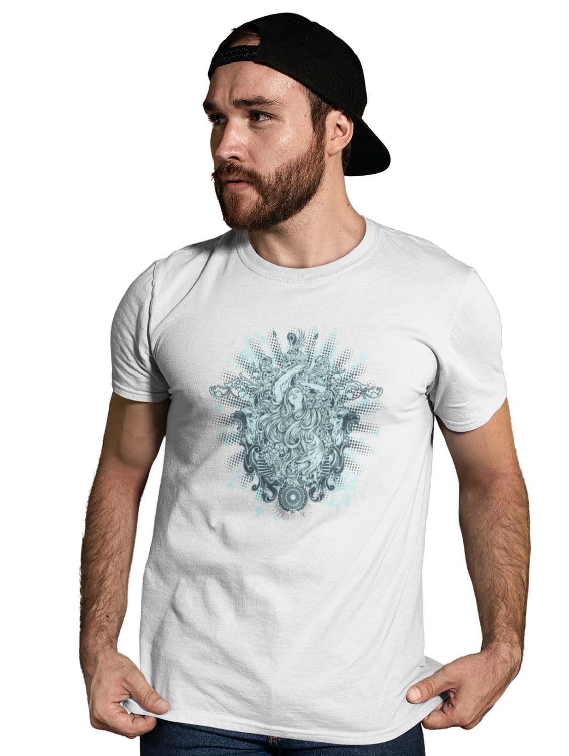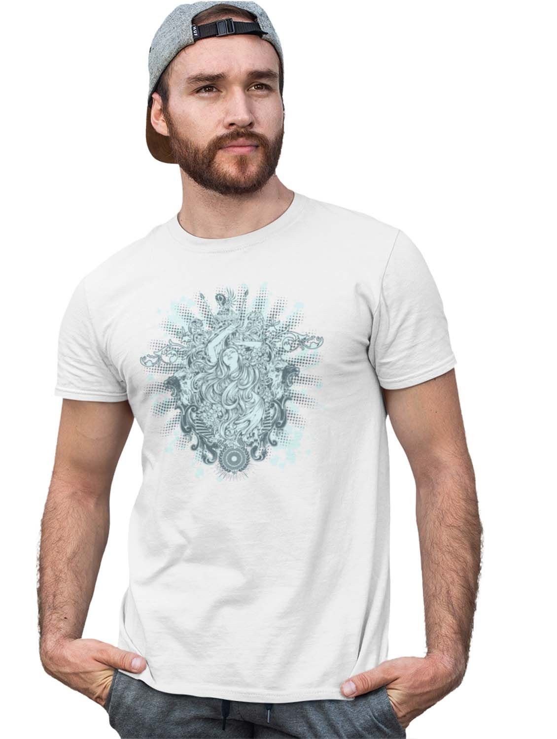 The Cursed Mermaid White Round Neck Cotton Half Sleeved T-Shirt with Printed Graphics