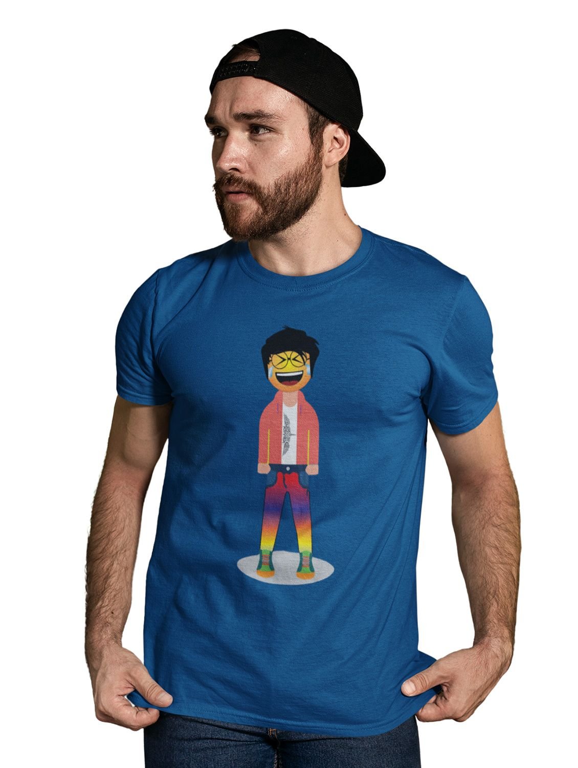A Young Laughing Emoji Boy Printed T-shirt (Blue) - Clothes for Emoji Lovers - Suitable for Fun Events - Foremost Gifting Material for Your Friends and Close Ones