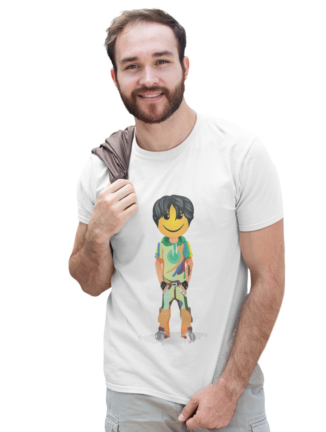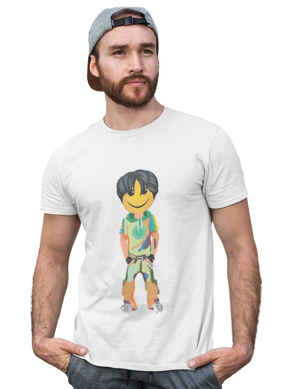 A Young Standing Emoji Boy Printed T-shirt (White) - Clothes for Emoji Lovers -Foremost Gifting Material for Your Friends and Close Ones