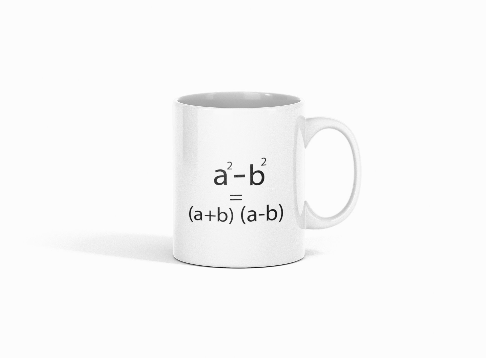 a2-b2= (a+b)(a-b) - formula themed printed ceramic white coffee and tea mugs/ cups for maths lovers