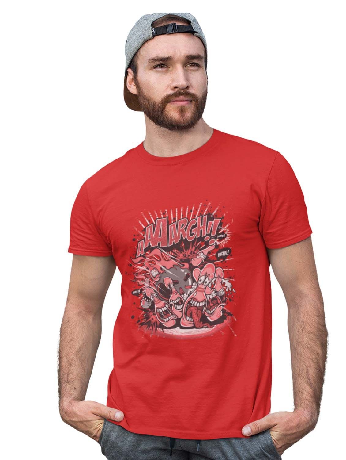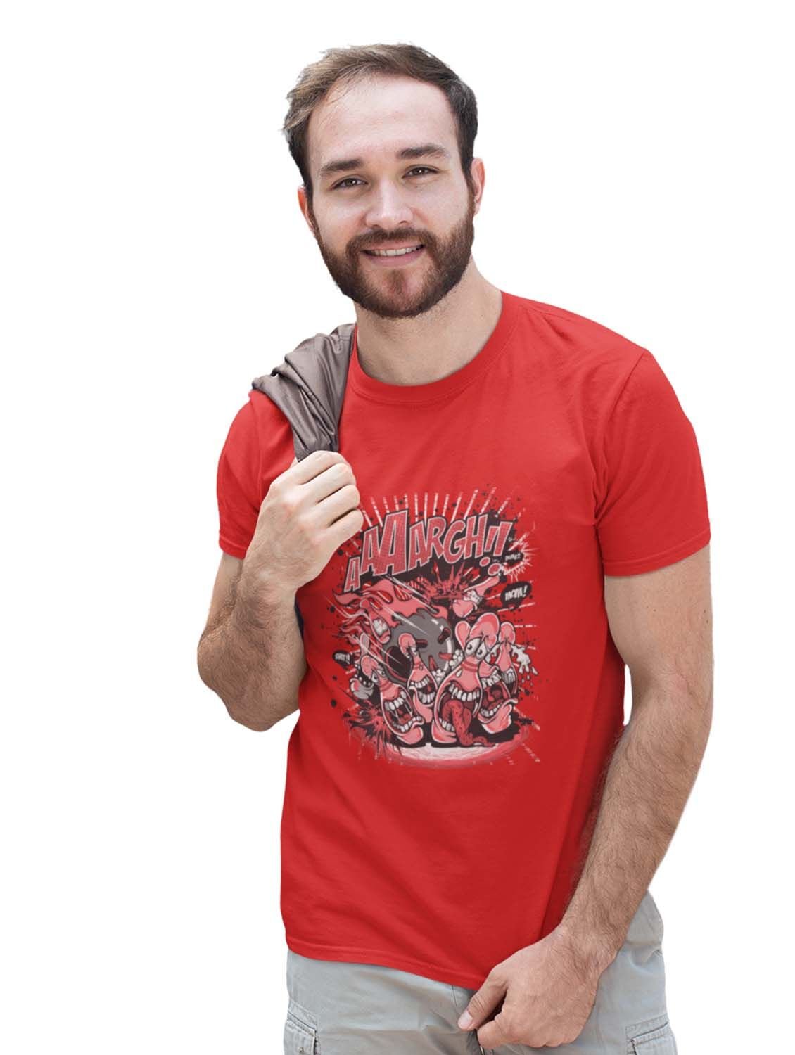 The Monster Bowling Red Round Neck Cotton Half Sleeved T-Shirt with Printed Graphics