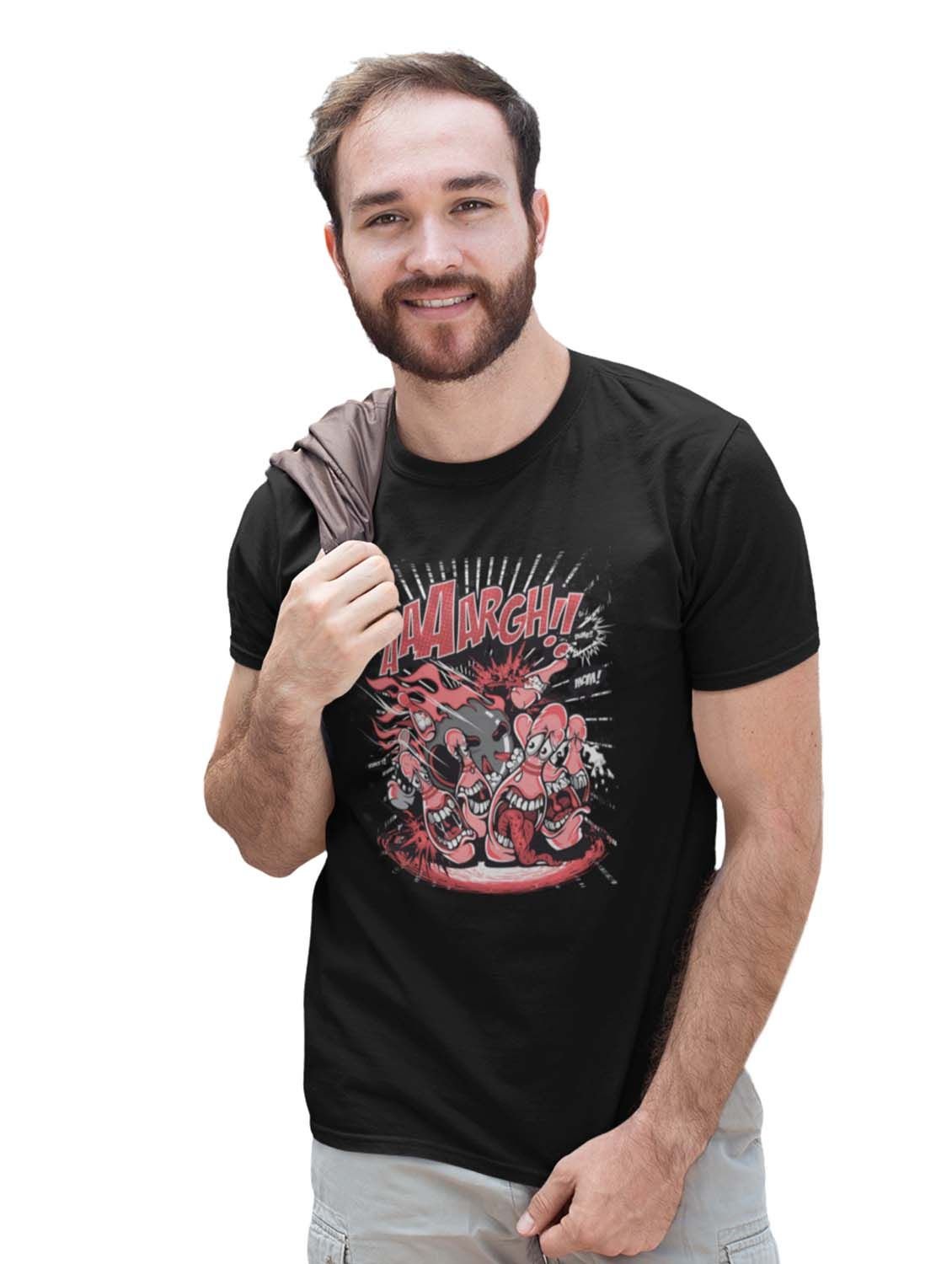 The Monster Bowling Black Round Neck Cotton Half Sleeved T-Shirt with Printed Graphics