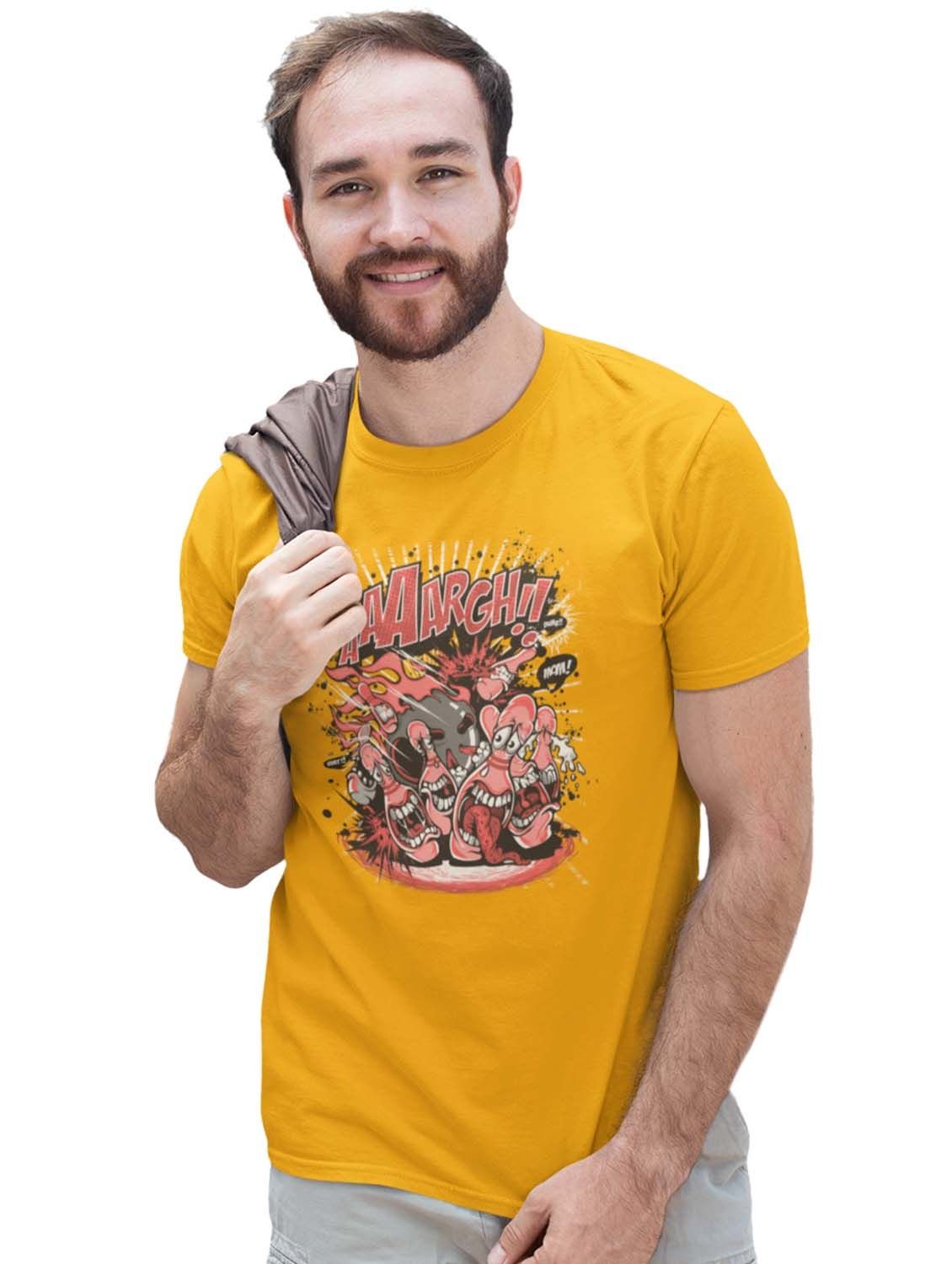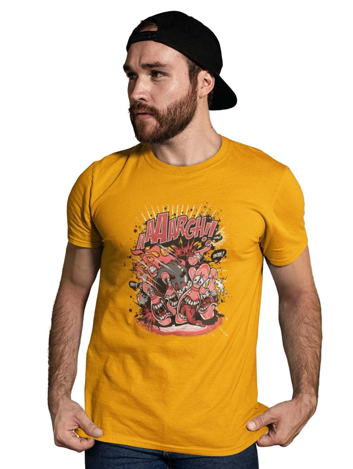 The Monster Bowling Yellow Round Neck Cotton Half Sleeved T-Shirt with Printed Graphics
