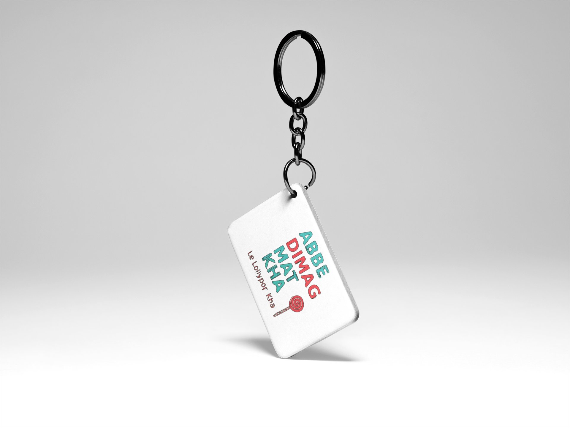 Abbe Dimag Mat Kha Le Lollypop Kha - acryllic printed white keychains/ keyrings for bollywood lover people(Pack Of 2)