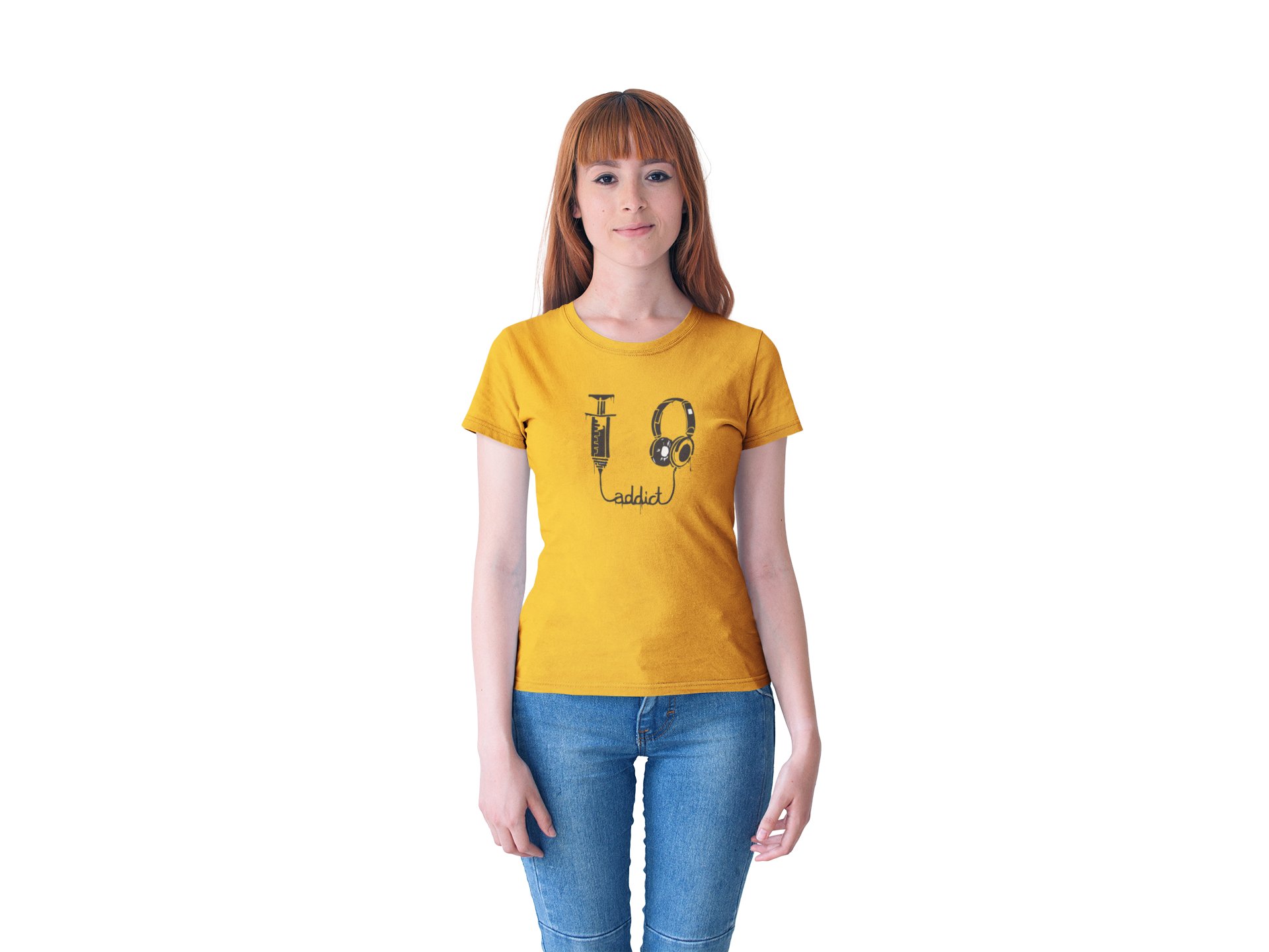 Addicted to music - Yellow - Women's - printed T-shirt - comfortable round neck Cotton