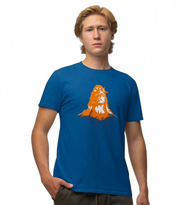 Adiyogi Blue Round Neck Cotton Half Sleeved Men T-Shirt with Printed Graphics