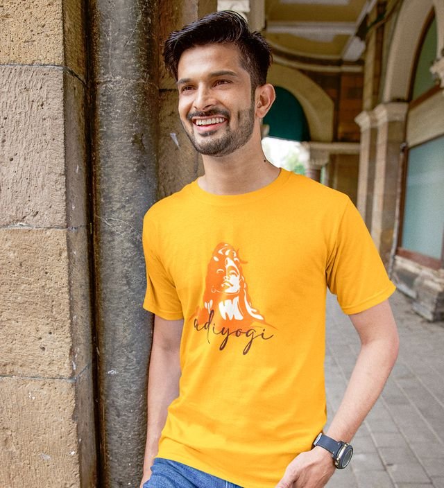 Adiyogi Yellow Round Neck Cotton Half Sleeved Men T-Shirt with Printed Graphics