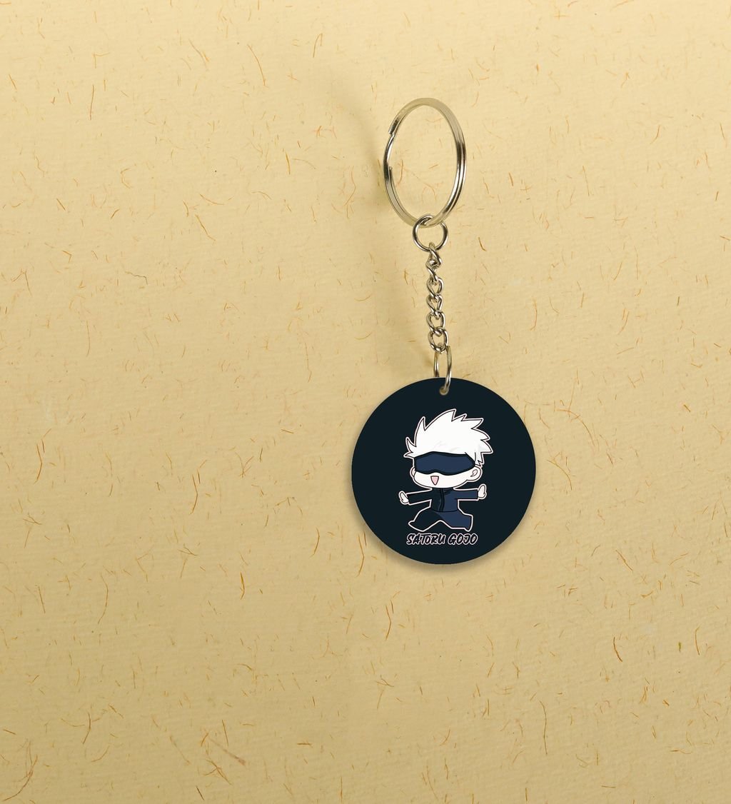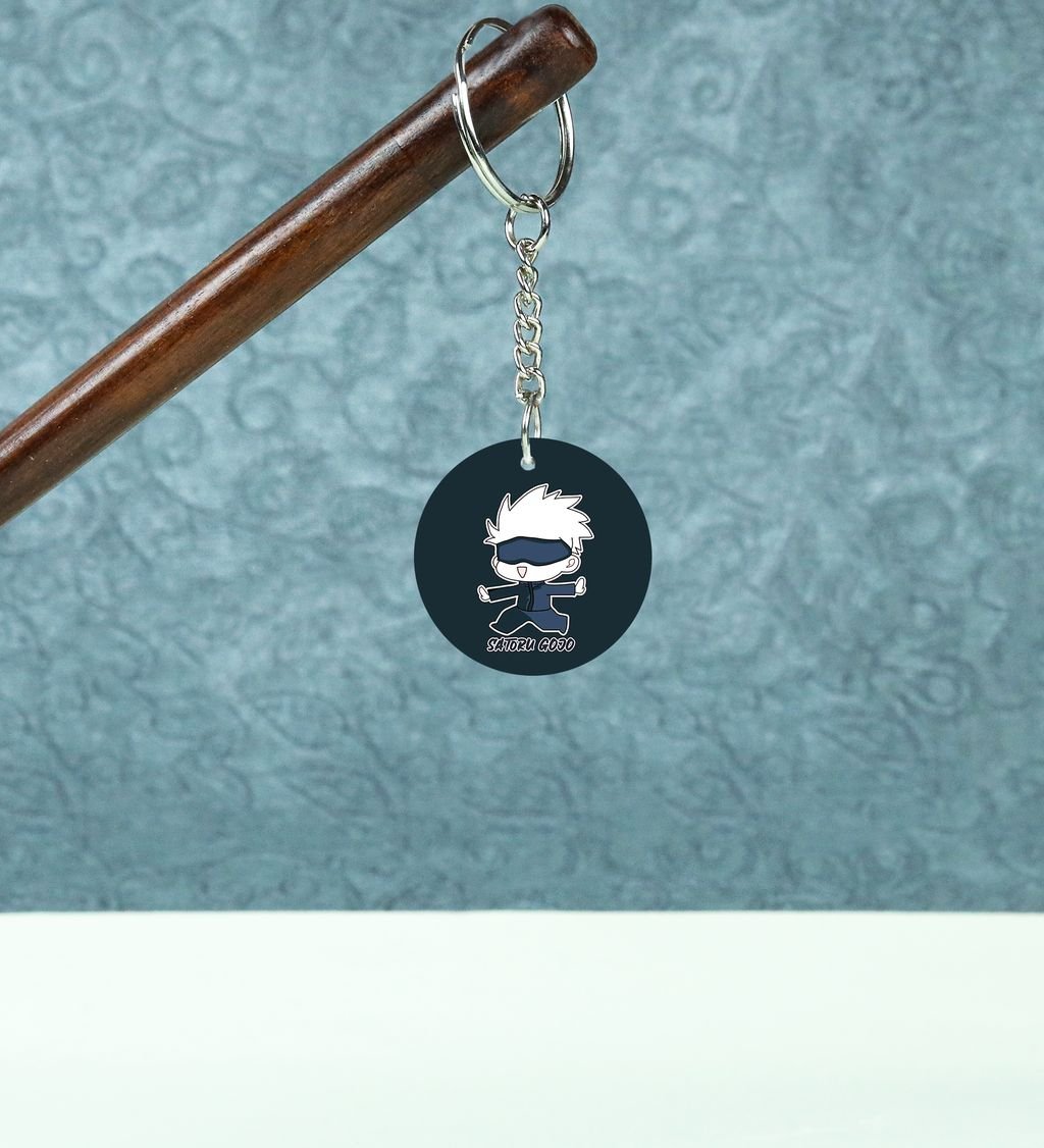 Adorable and Speedy Gojo Satoru Running with Charm Anime Printed Round Keychains Pack of 2