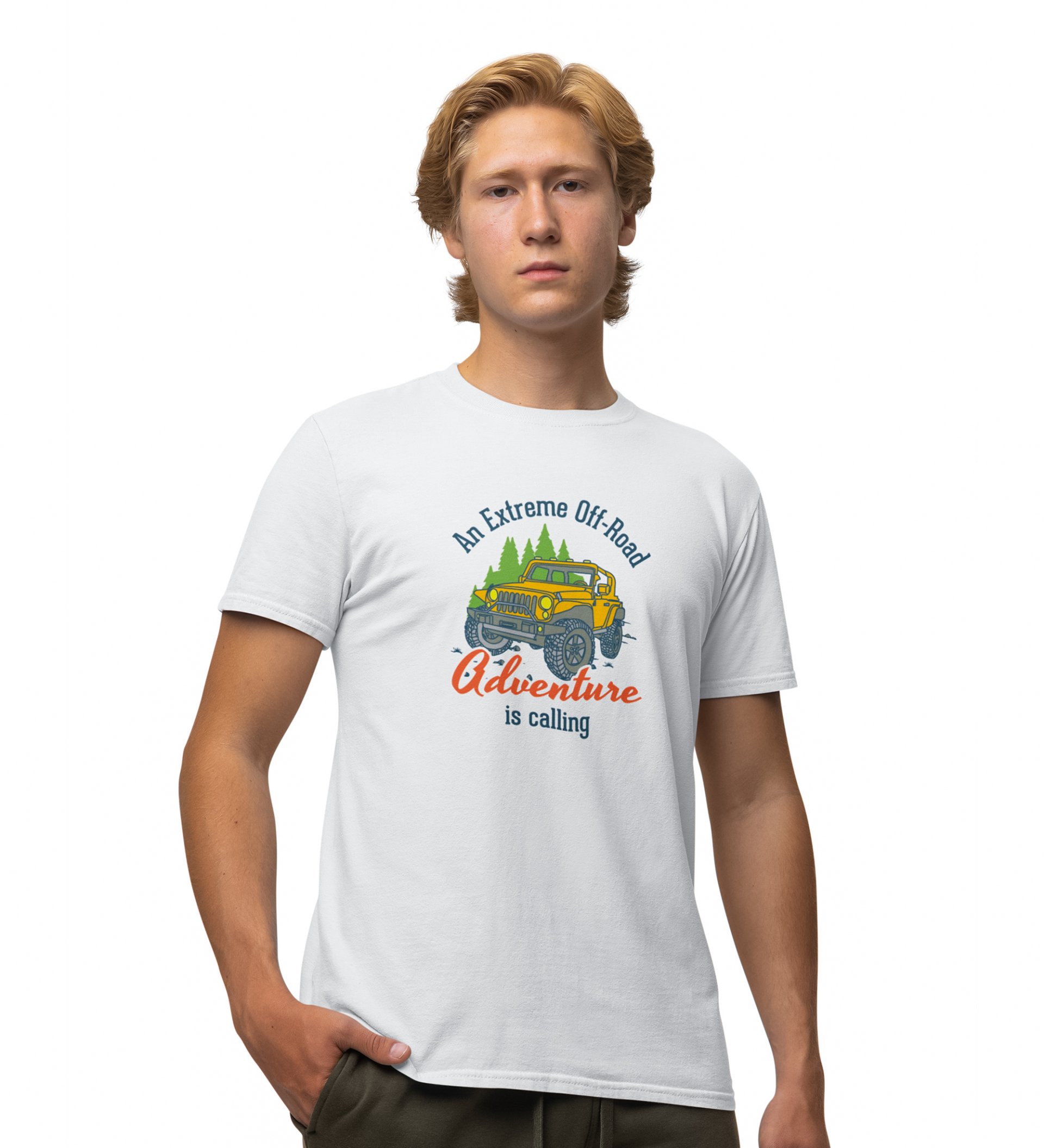 JD.TRENDS An Extreme Off Road White Round Neck Cotton Half Sleeved Men's T-Shirt with Printed Graphics