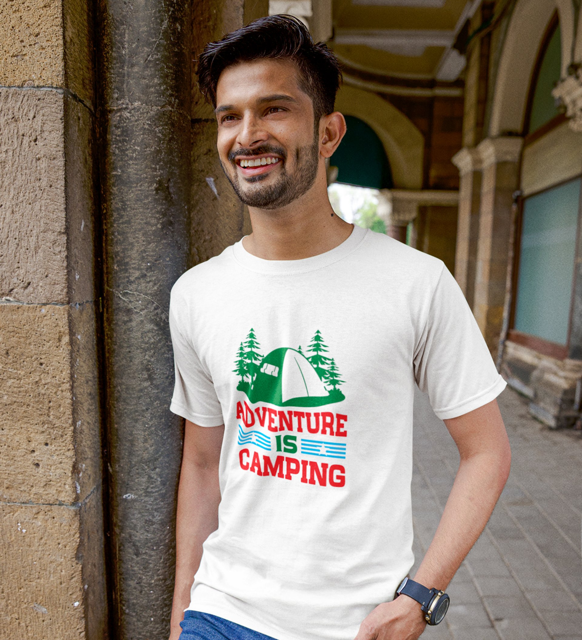 JD.TRENDS It's Camping White Round Neck Cotton Half Sleeved Men's T-Shirt with Printed Graphics