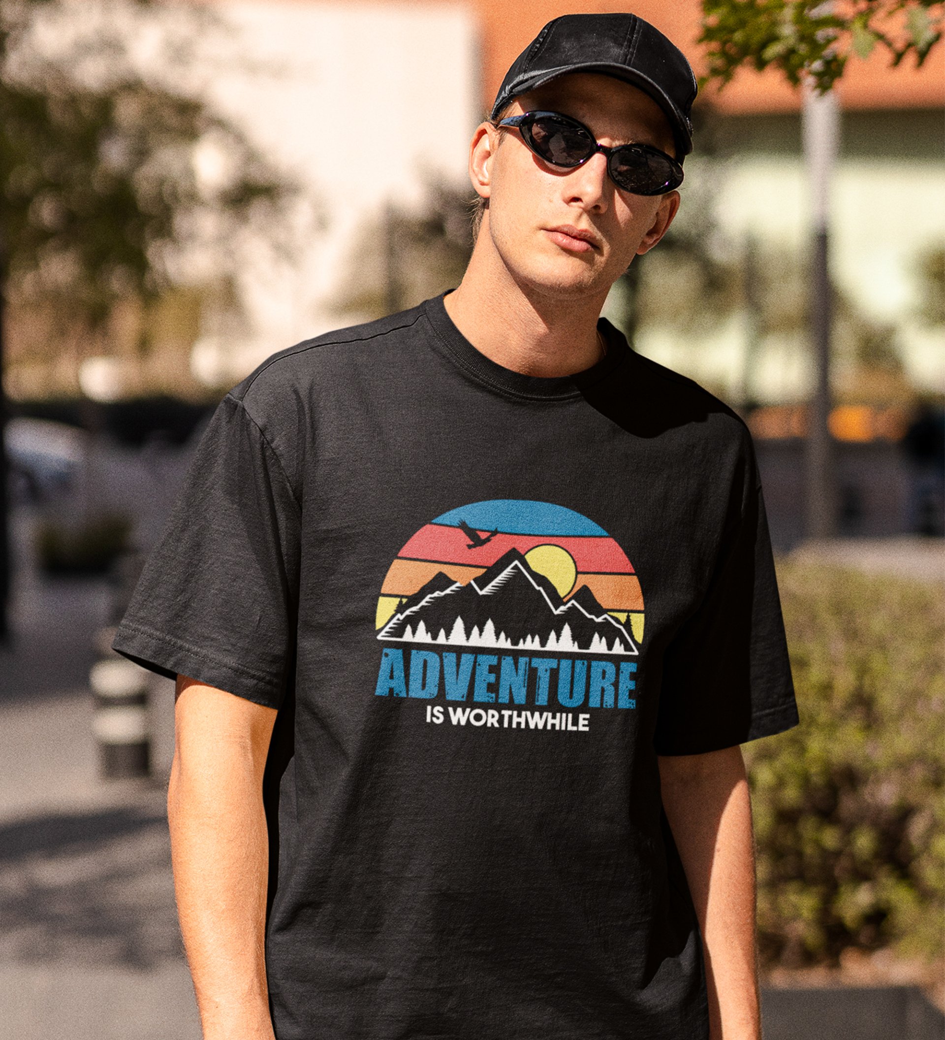 Adventure is an important part of our life. Everyone has their thoughts over their personal adventure journeys. So whats your take on it ? We have brought you tons of option to choose from, to express your inner Adventurer. Made of fabric, and designed for your comfort and style. Don't wait anymore to get your personal T-shirt.