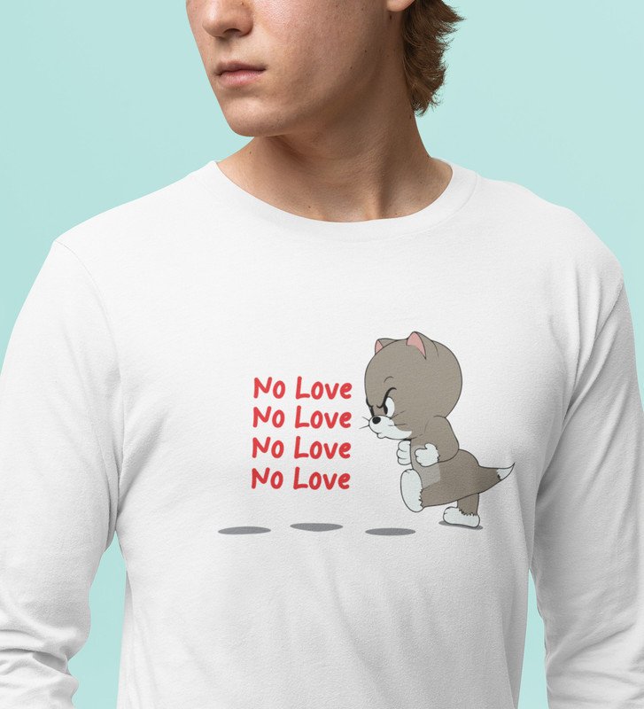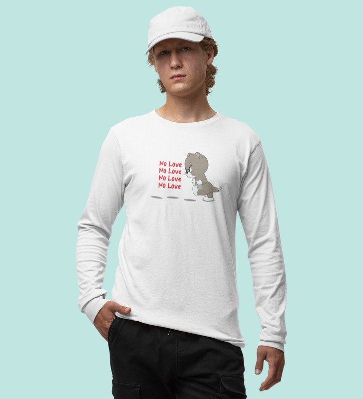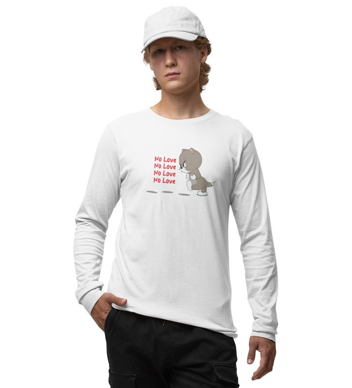 Again No Love : Sublimation Printed (white) Full Sleeve T-Shirt For Singles