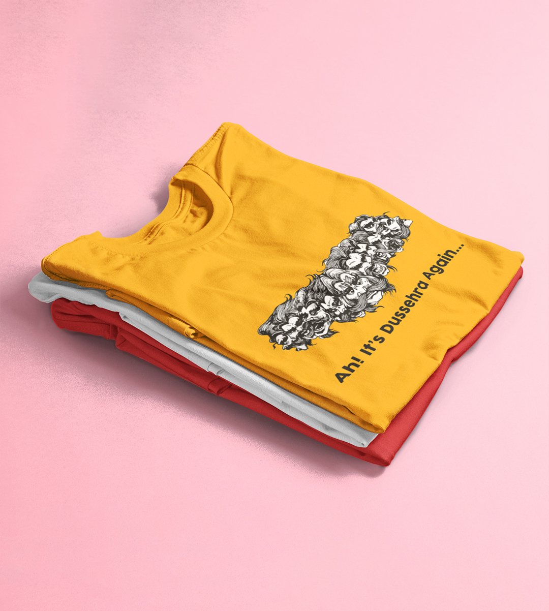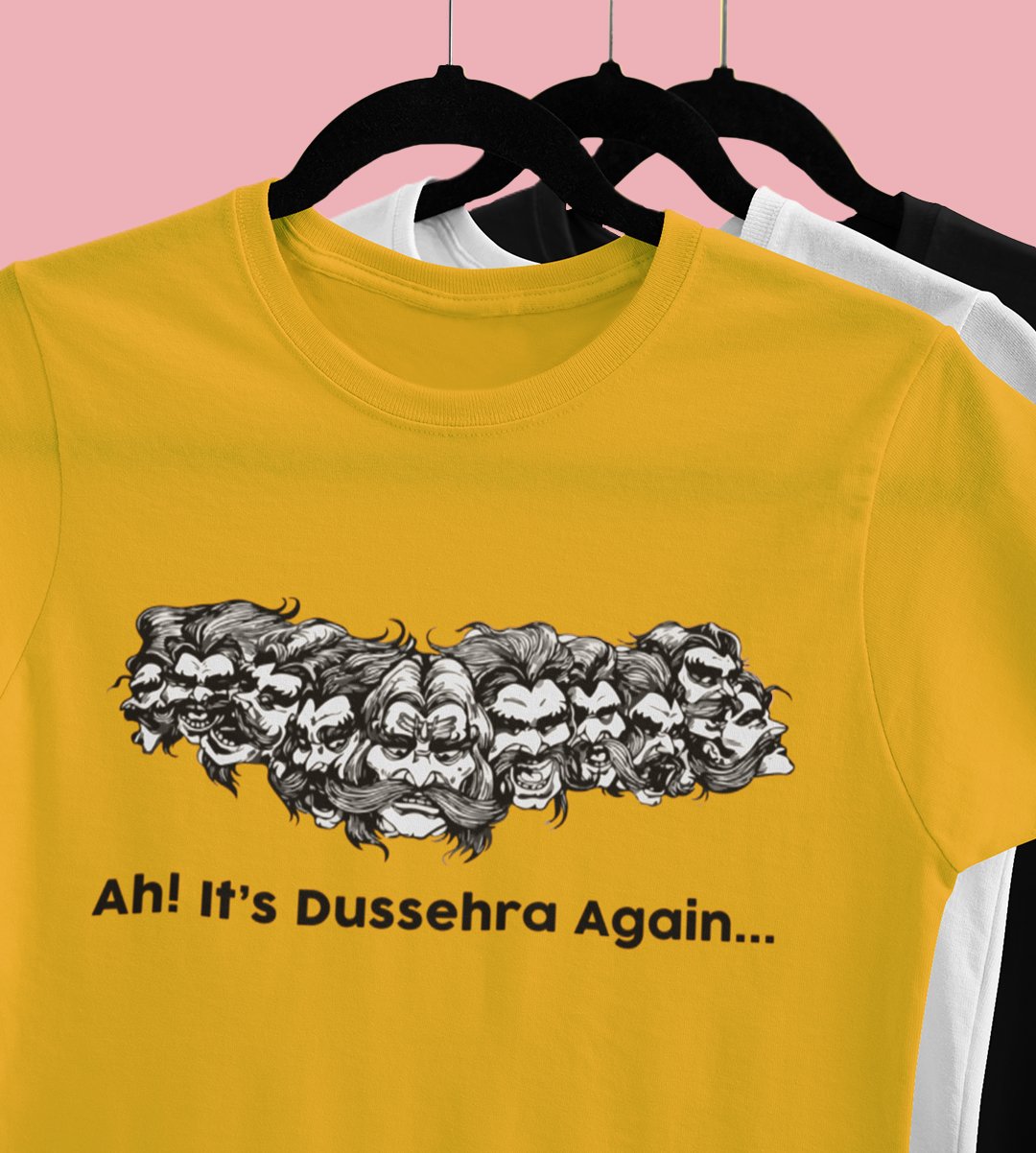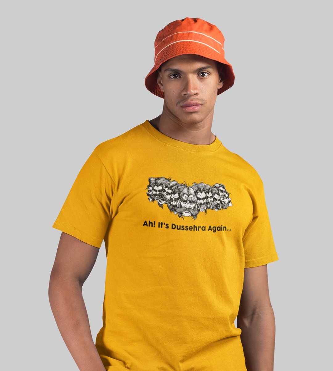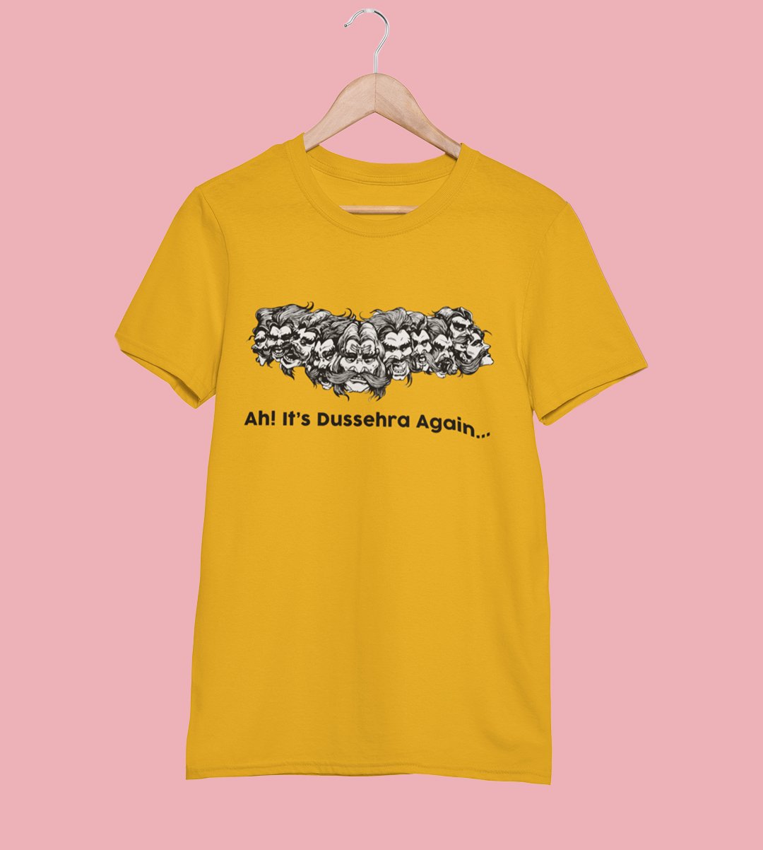 Ah it's dussehra again printed unisex adults round neck cotton half-sleeve yellow tshirt specially for Navratri festival/ Durga puja