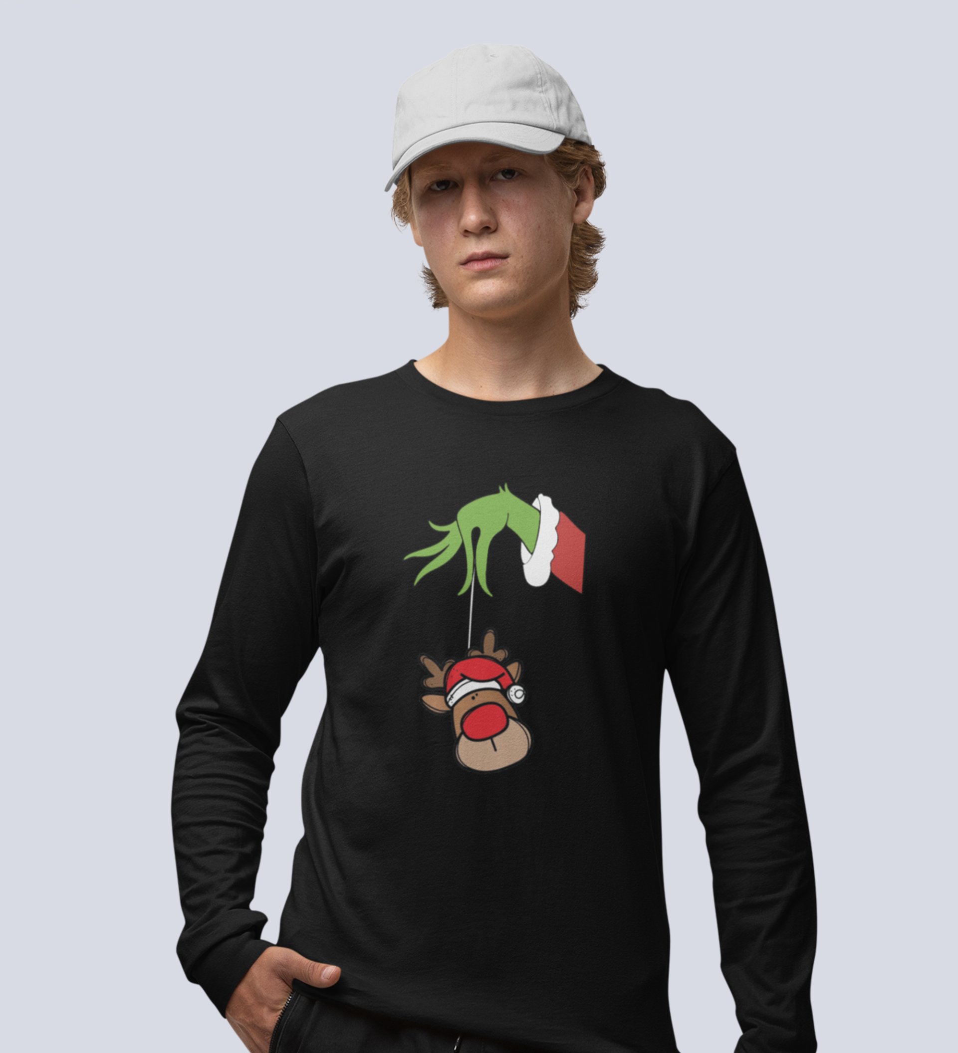 Alien & Reindeer:Black Christmas Edition PrintedFull Sleeve T-shirt - Ideal for Spreading Holiday Cheer at Gym, Yoga, and Outdoor Activities