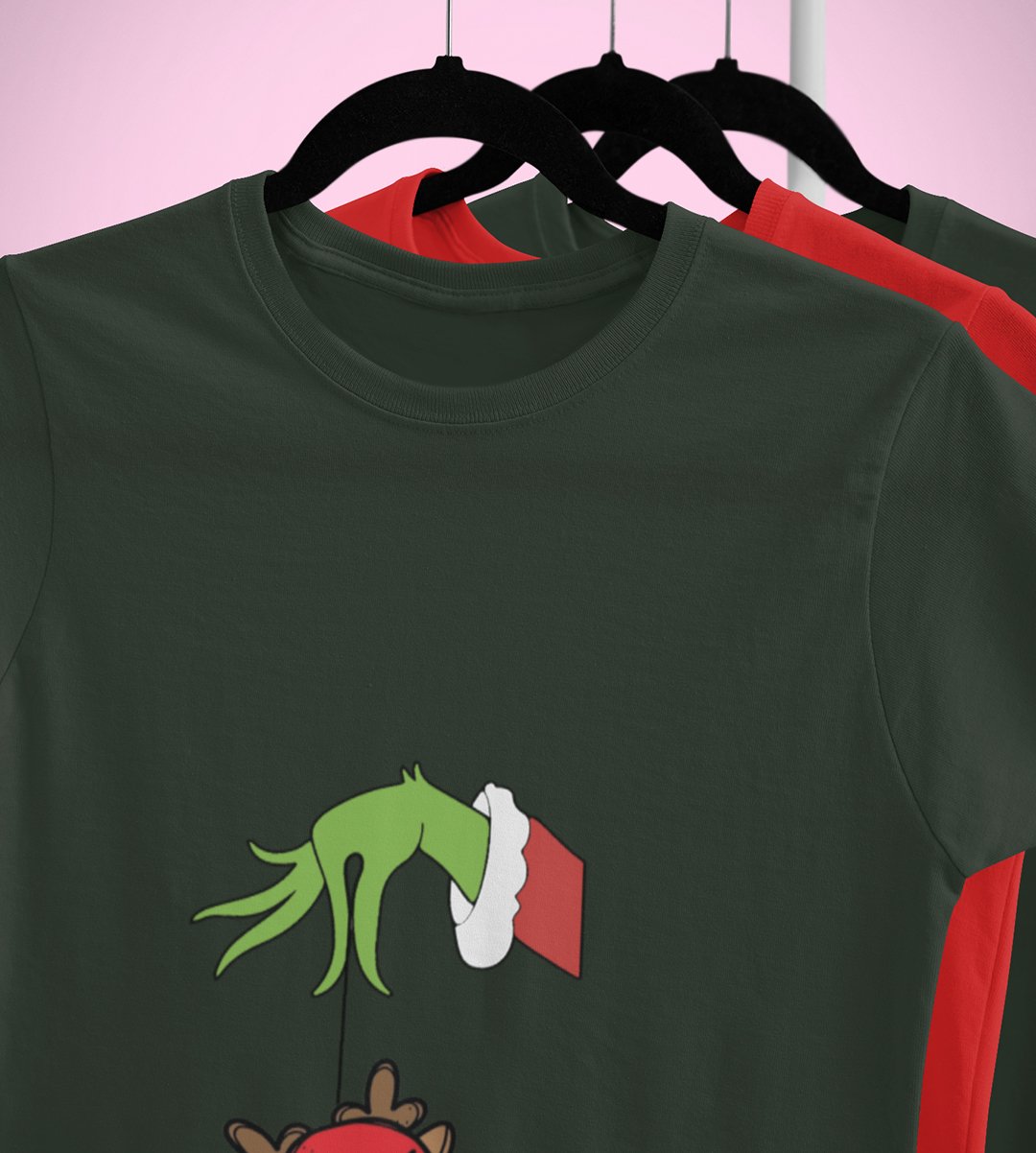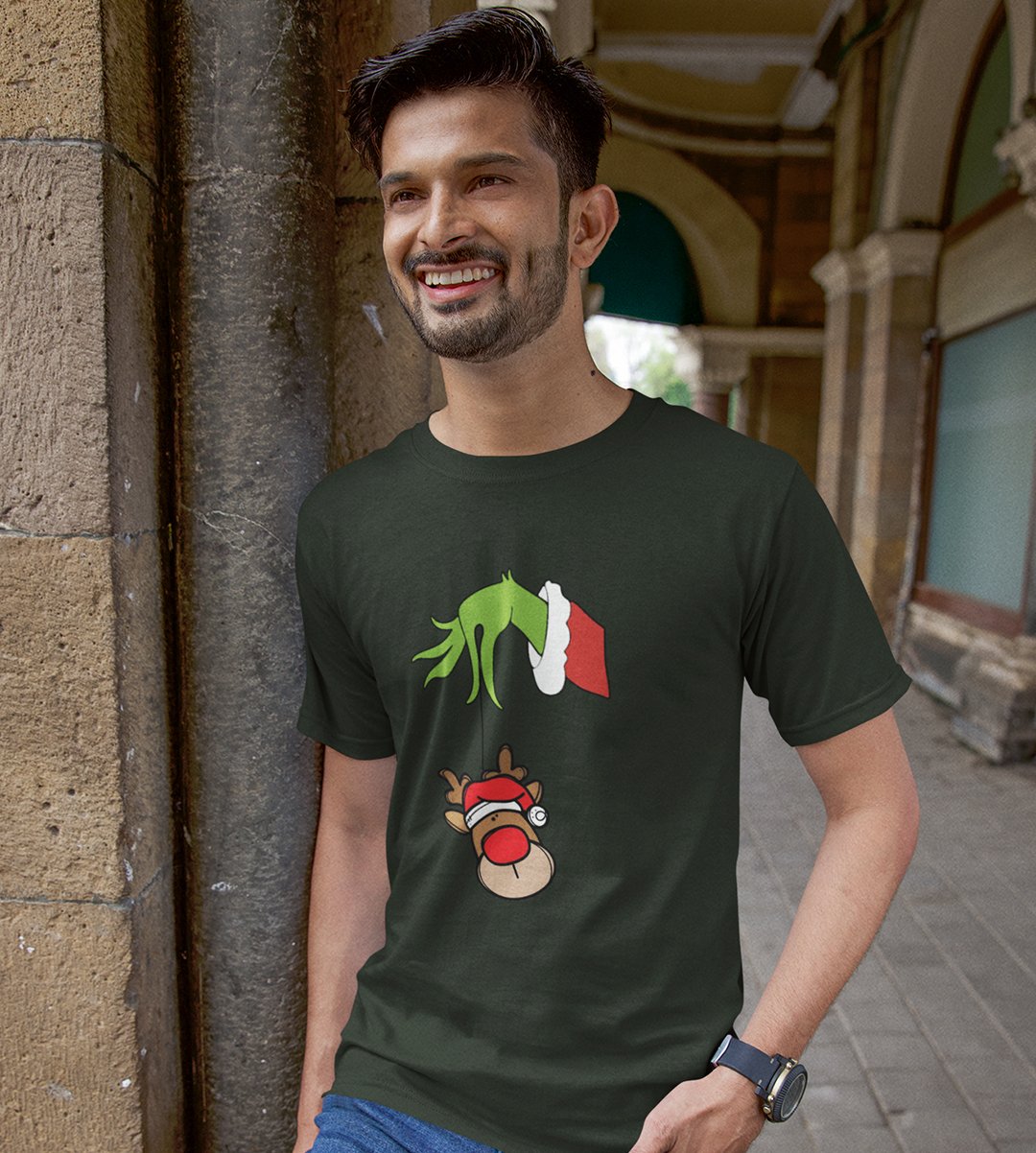 Alien & Reindeer:(Green) Christmas Edition Printed T-shirt - Ideal for Spreading Holiday Cheer at Gym, Yoga, and Outdoor Activities