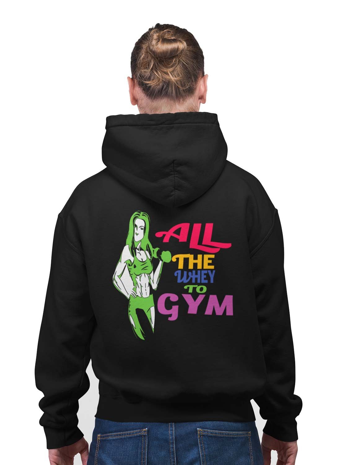 All The Whey To Gym With Colourful Text's printed artswear black hoodies for winter casual wear specially for Men