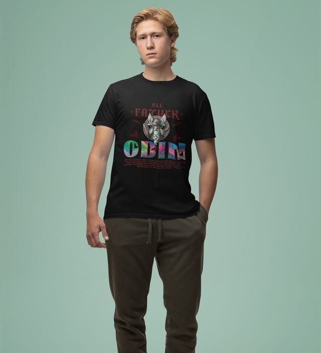 Allfather of Runes: Norse Legend Graphic Printed Black T-Shirt