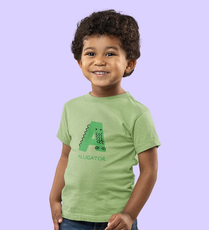 Alligator, Boys Printed Crew Neck Tshirt (Olive)