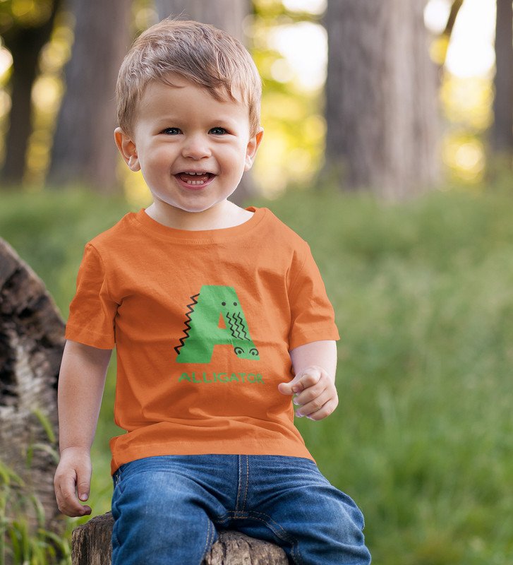 Alligator, Boys Printed Crew Neck Tshirt (orange)